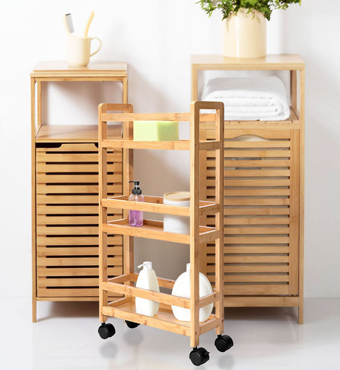 Bambusova polica na kotačima INAKI 3 razine prirodna