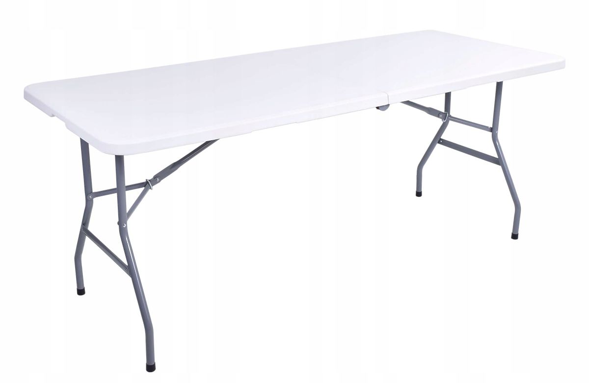 Catering set koji uključuje sklopivi stol duljine 180 cm i 6 sklopivih stolica savršeno odgovara za razne događaje. Čelična konstrukcija s praškastim premazom jamči visoku stabilnost, a ploča izrađena od izdržljivog HDPE materijala otporna je na vremenske uvjete. Stolice su izrađene od materijala kao što su čelik, PVC, MDF, pjena i eko koža. I stol i stolice su lako prenosivi, pri čemu je stol dodatno opremljen udobnom ručkom. Protuklizne noge na nogama osiguravaju stabilnost seta.