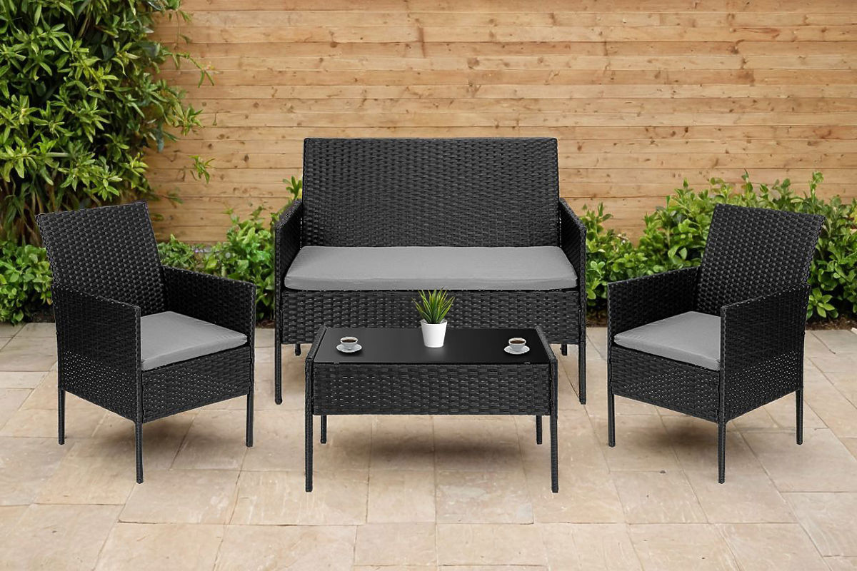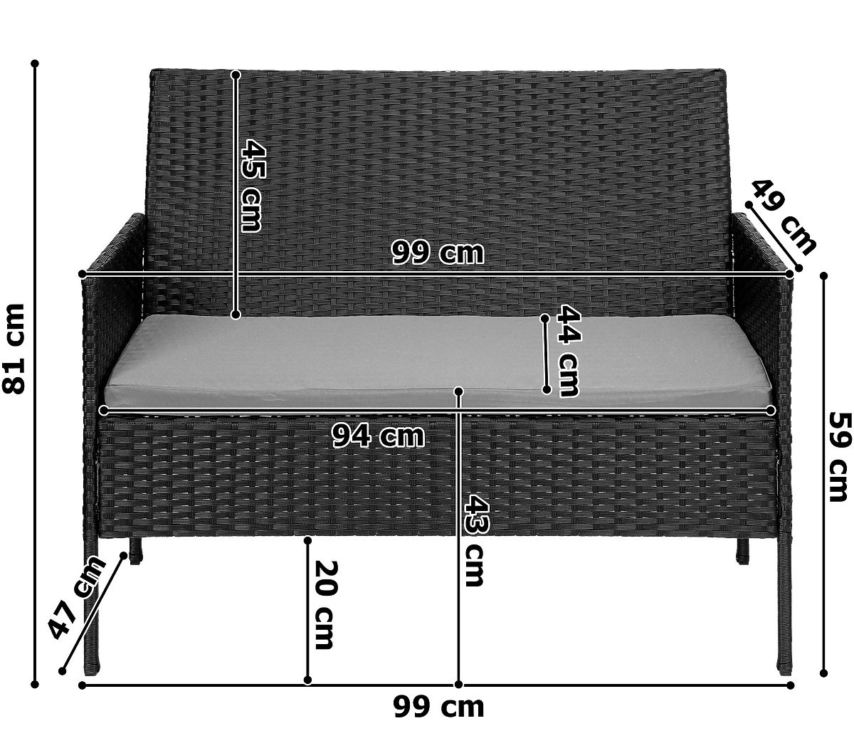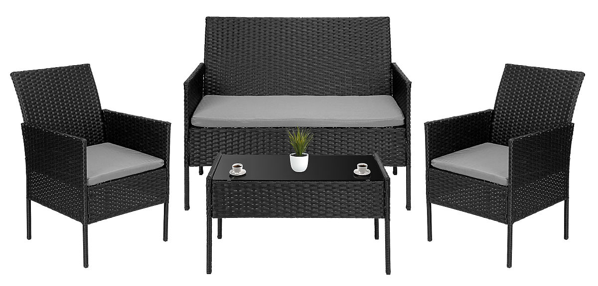 Vrtni namještaj od tehnoratana set 4u1 MAGNOLIA crna sivi jastuci