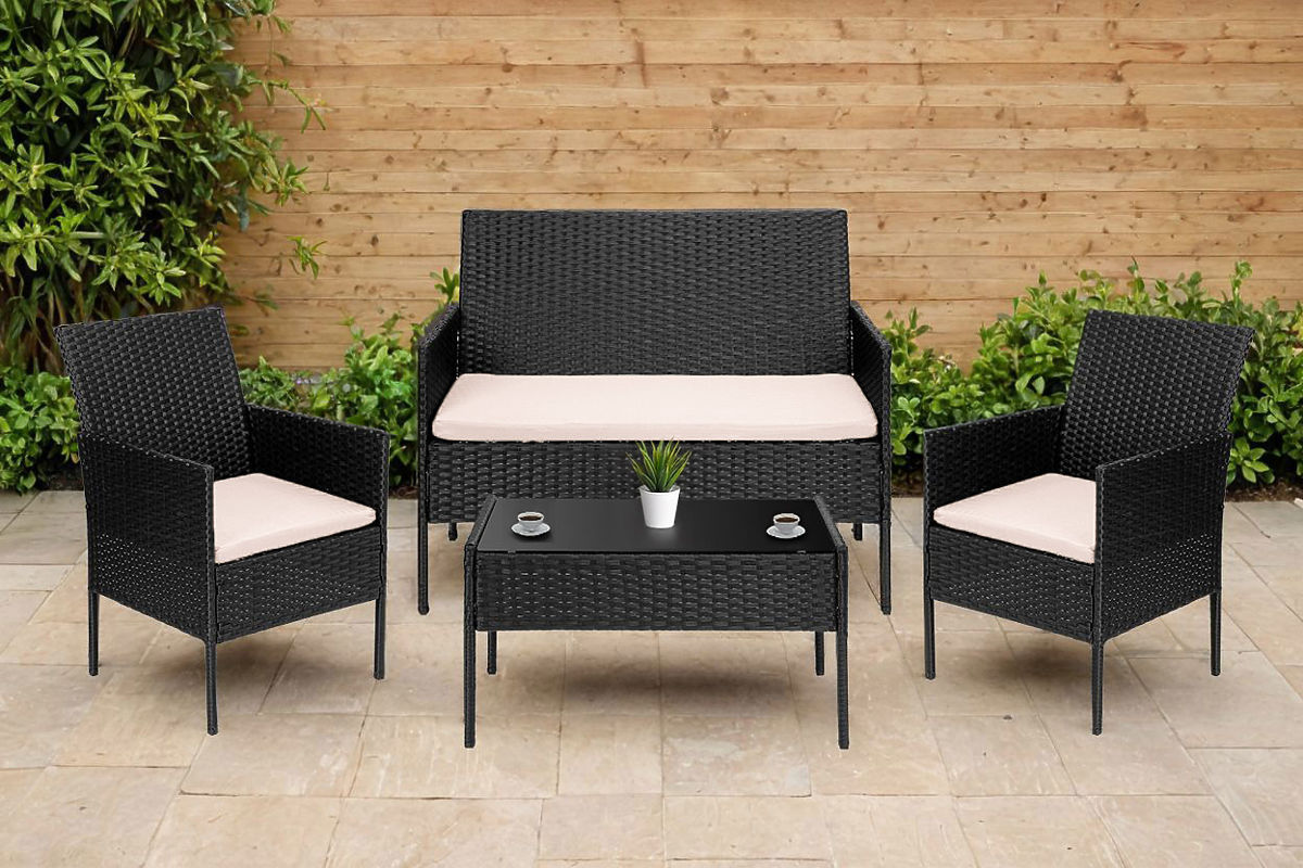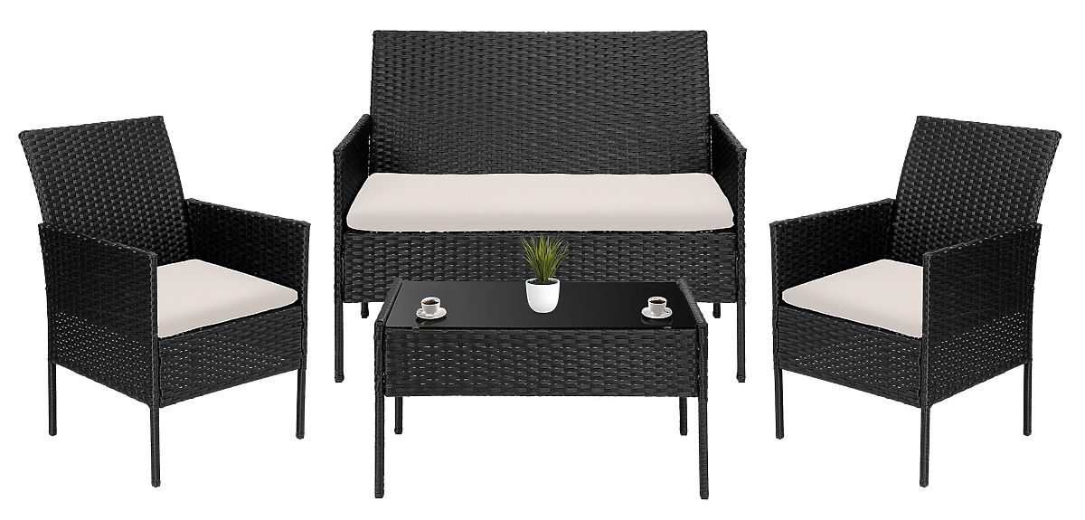 Vrtni namještaj od tehnoratana set 4u1 MAGNOLIA crna bež jastuci