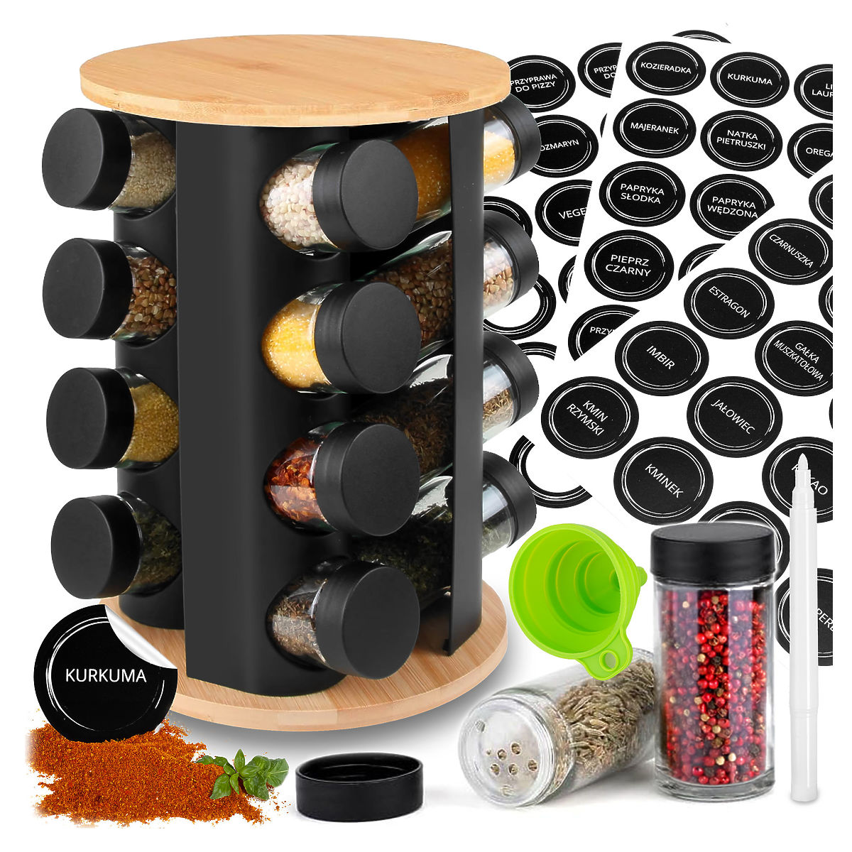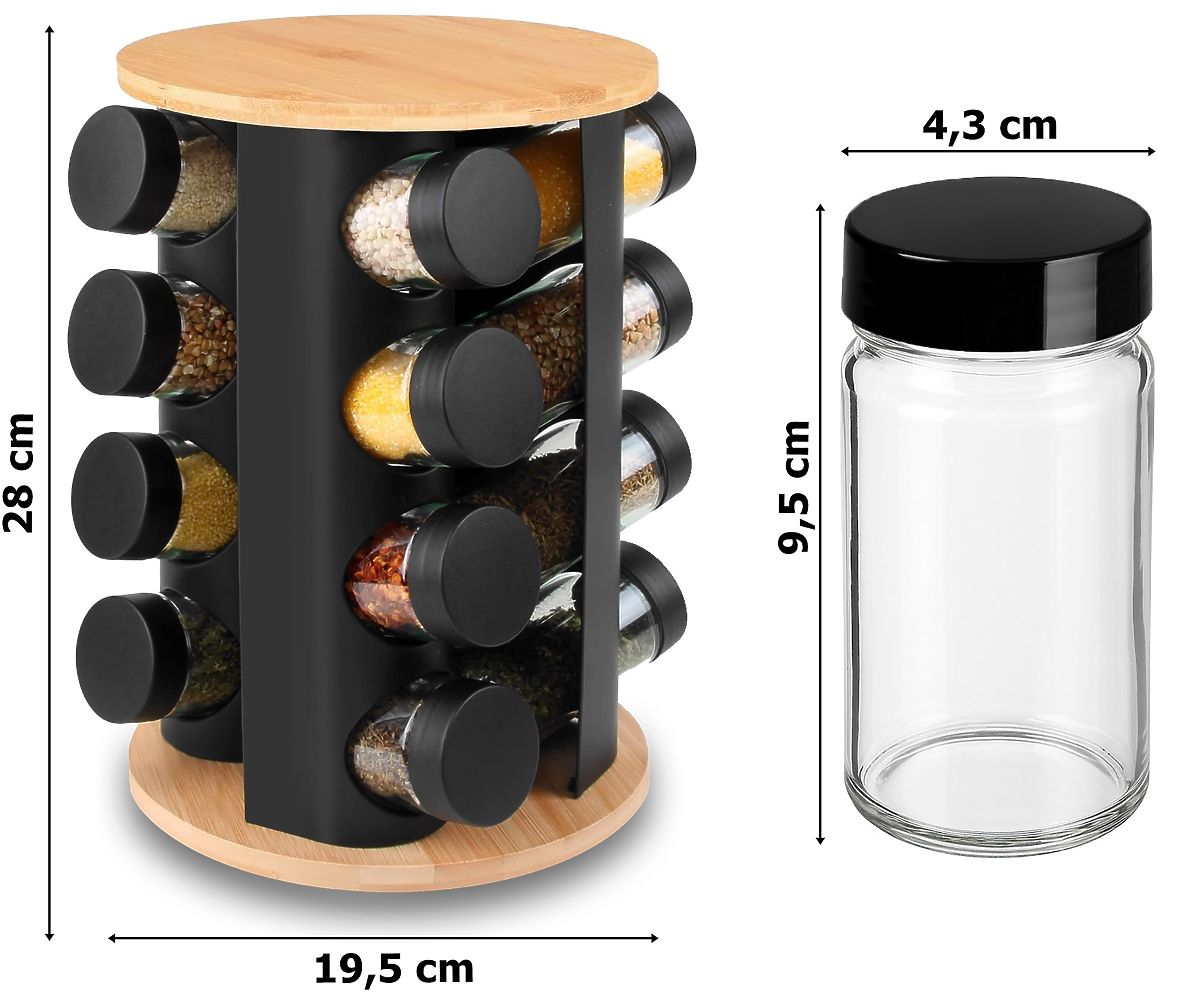 Rotirajući stalak za začine ROMERO 16 staklenki + 72 naljepnice