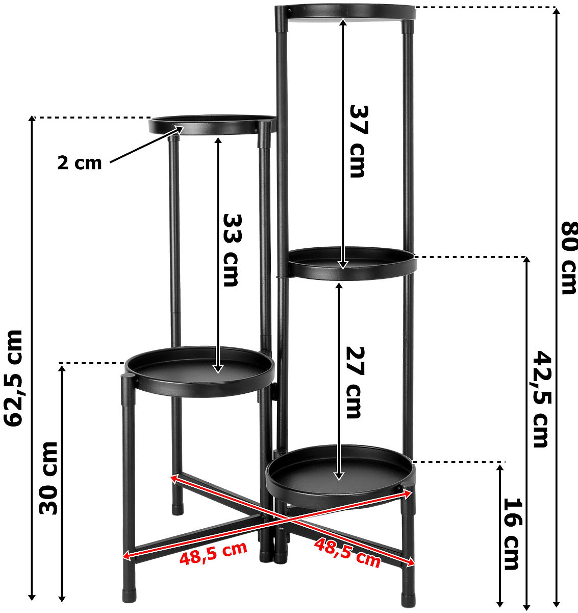 ➡️ Visina polica: 16 cm, 30 cm, 42,5 cm, 62,5 cm, 80 cm