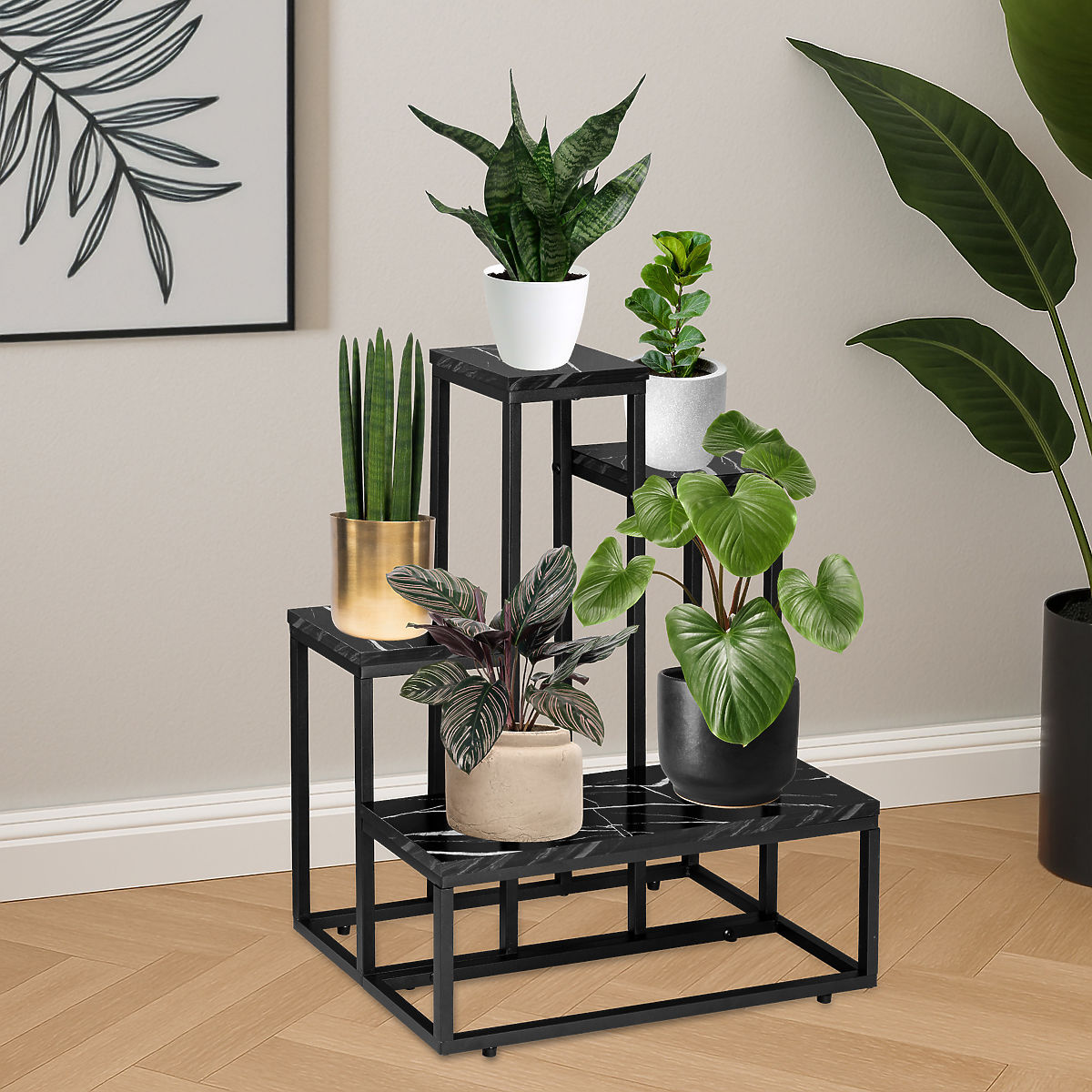 ✔️ Mramorna elegancija – laminirane police u boji crnog mramora daju stalku za cvijeće luksuzni karakter. Laminirana površina ne samo da izgleda elegantno, već i lijepo ističe biljke i dekoracije.