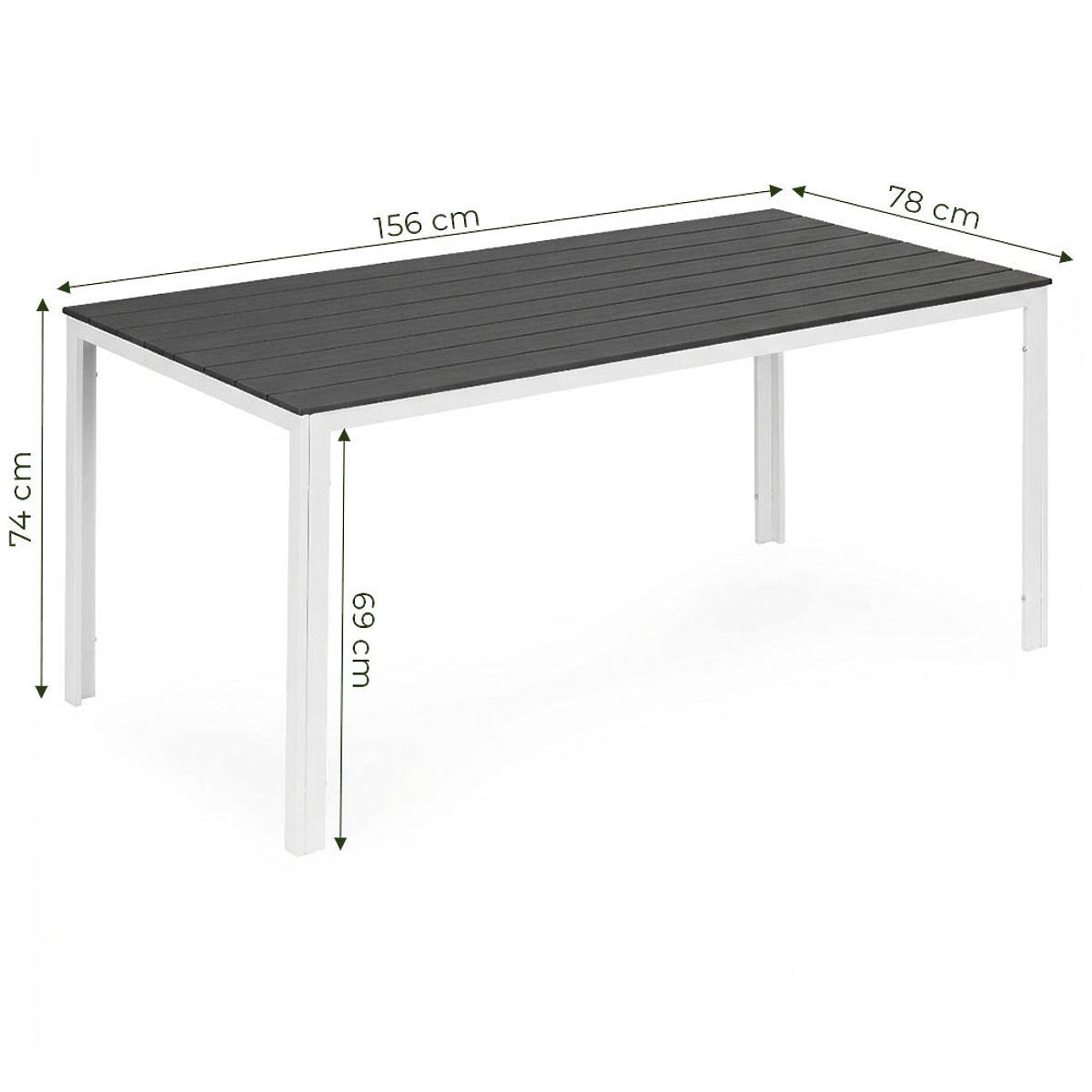 ESTETSKA I IZDRŽLJIVA PLOČAPloča je izrađena od posebnog materijala polywood, koji se odlikuje otpornošću na vremenske uvjete. Njegov oblik i tekstura imitiraju prirodno drvo, dajući cijelom stolu elegantan, bezvremenski karakter. Male praznine između ploča omogućuju slobodan protok vode tijekom kiše, što povećava funkcionalnost stola i olakšava njegovo svakodnevno korištenje na otvorenom.