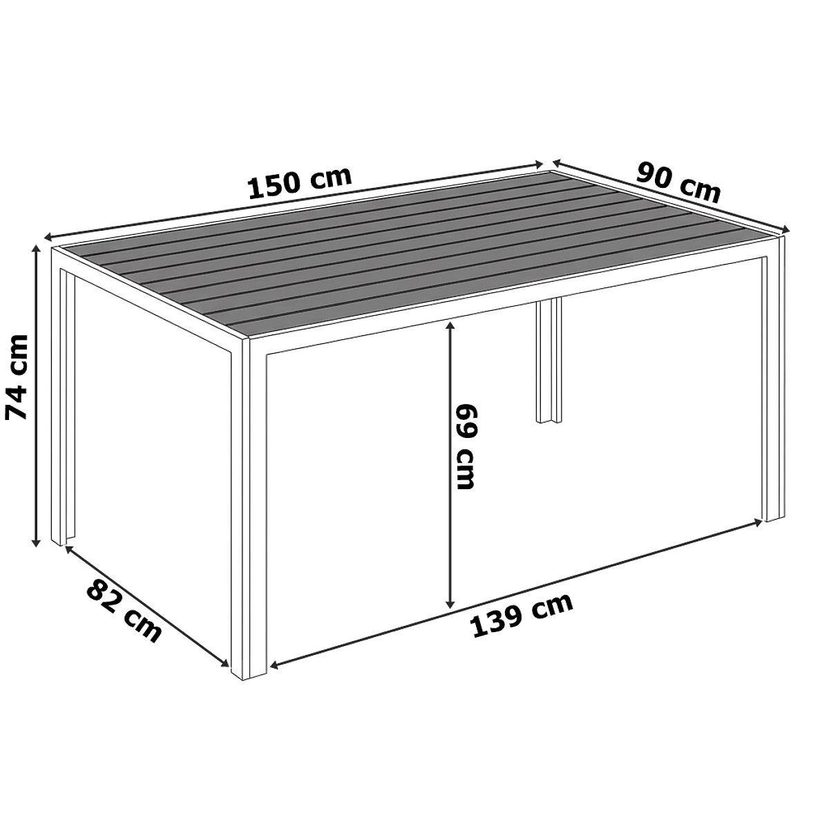 Vrtni aluminijski stol ZENON 150x90 cm