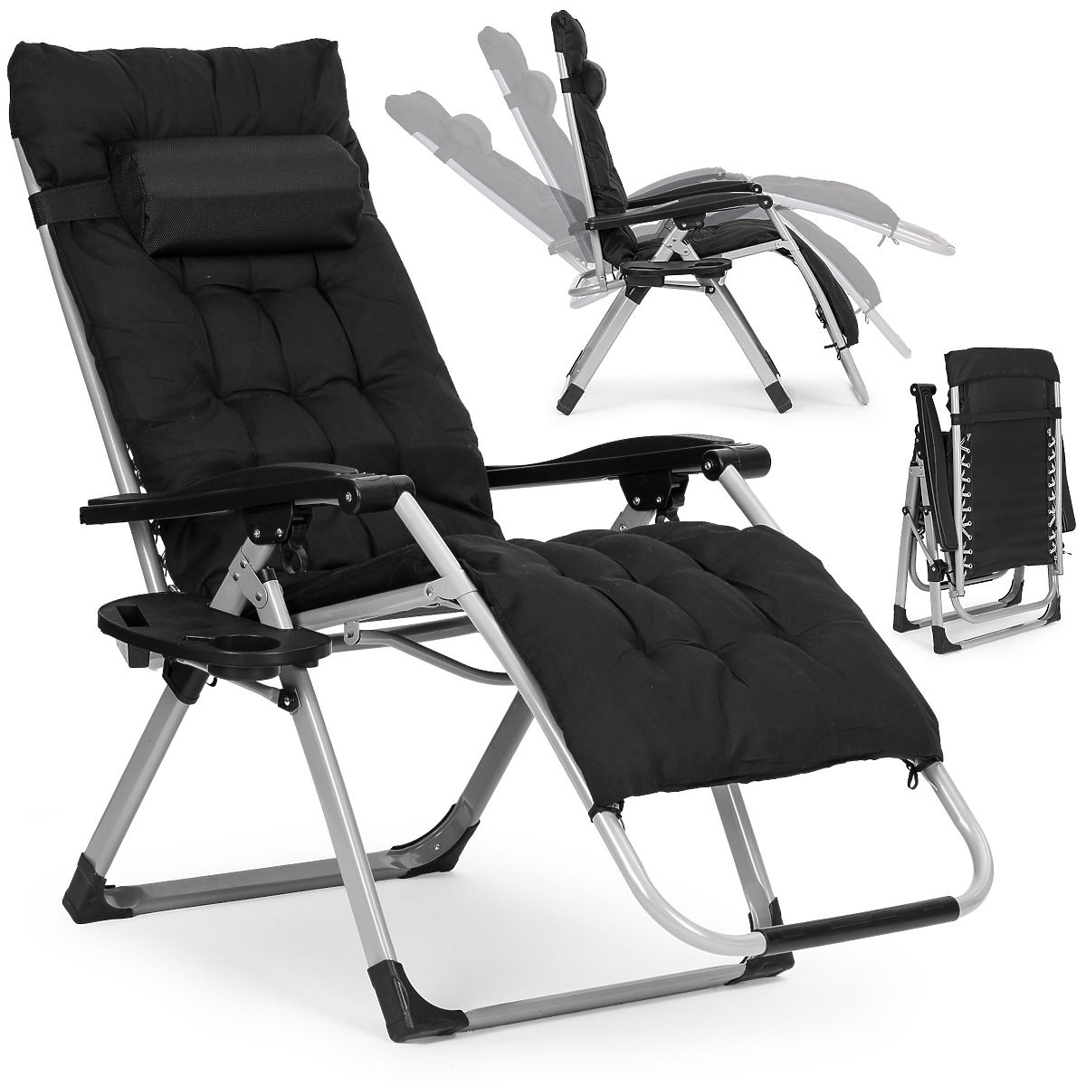 Lukahome.hr » Vrtni namještaj / Vrtne ležaljke / Vrtna ležaljka s podesivim naslonom i jastukom + naslon za glavu crna MultiGarden