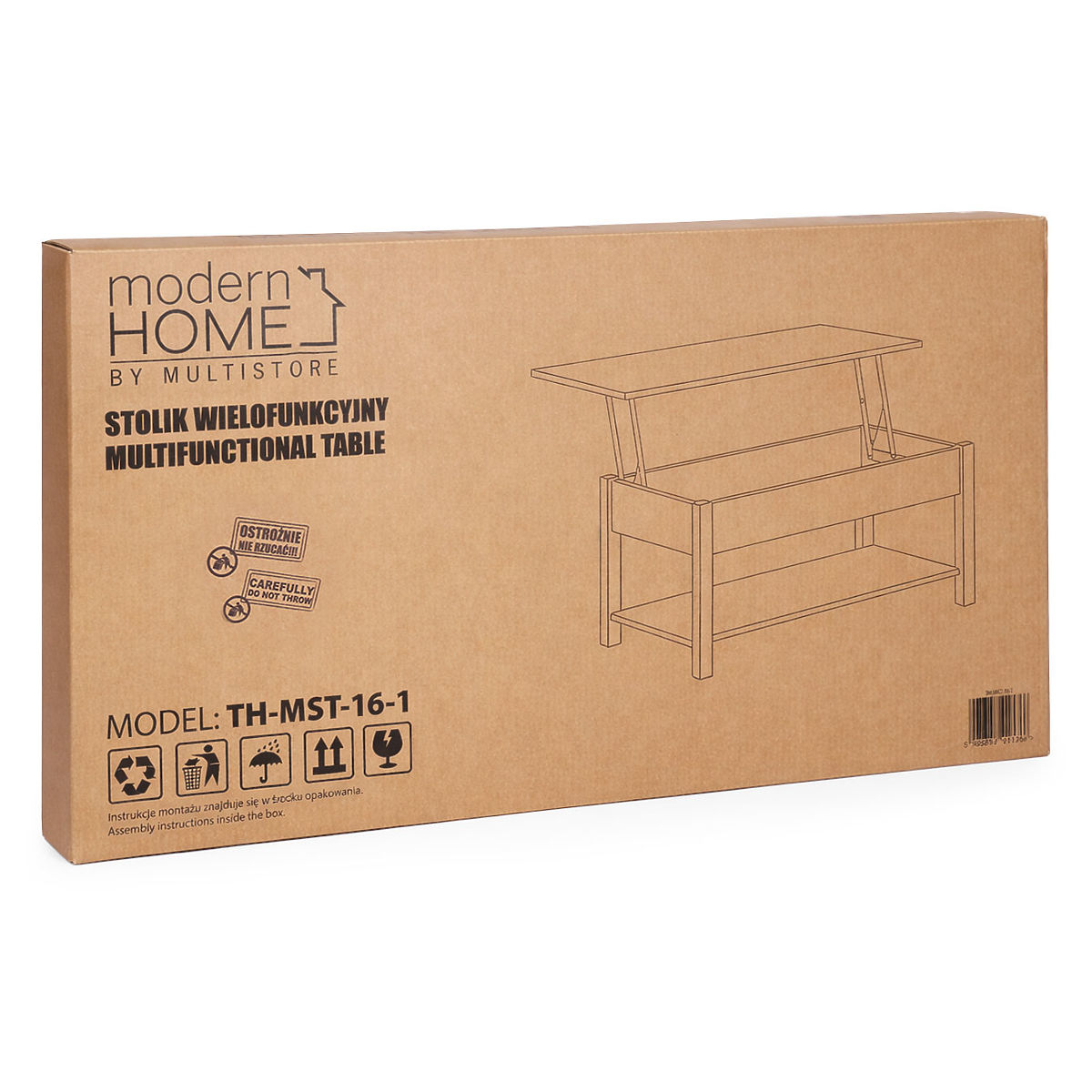Konferencijski stol s podiznom pločom marke ModernHome je rješenje koje se prirodno uklapa u vaš svakodnevni ritam. Odlično se pokazuje kako tijekom opuštanja uz šalicu kave, tako tijekom rada s prijenosnim računalom ili obroka ispred televizora. Zahvaljujući svojoj funkcionalnosti omogućuje udobno korištenje prostora dnevnog boravka bez potrebe za dodatnim namještajem. To je praktično središte svakodnevnih aktivnosti koje olakšava organizaciju i jamči da uvijek imate sve pri ruci.