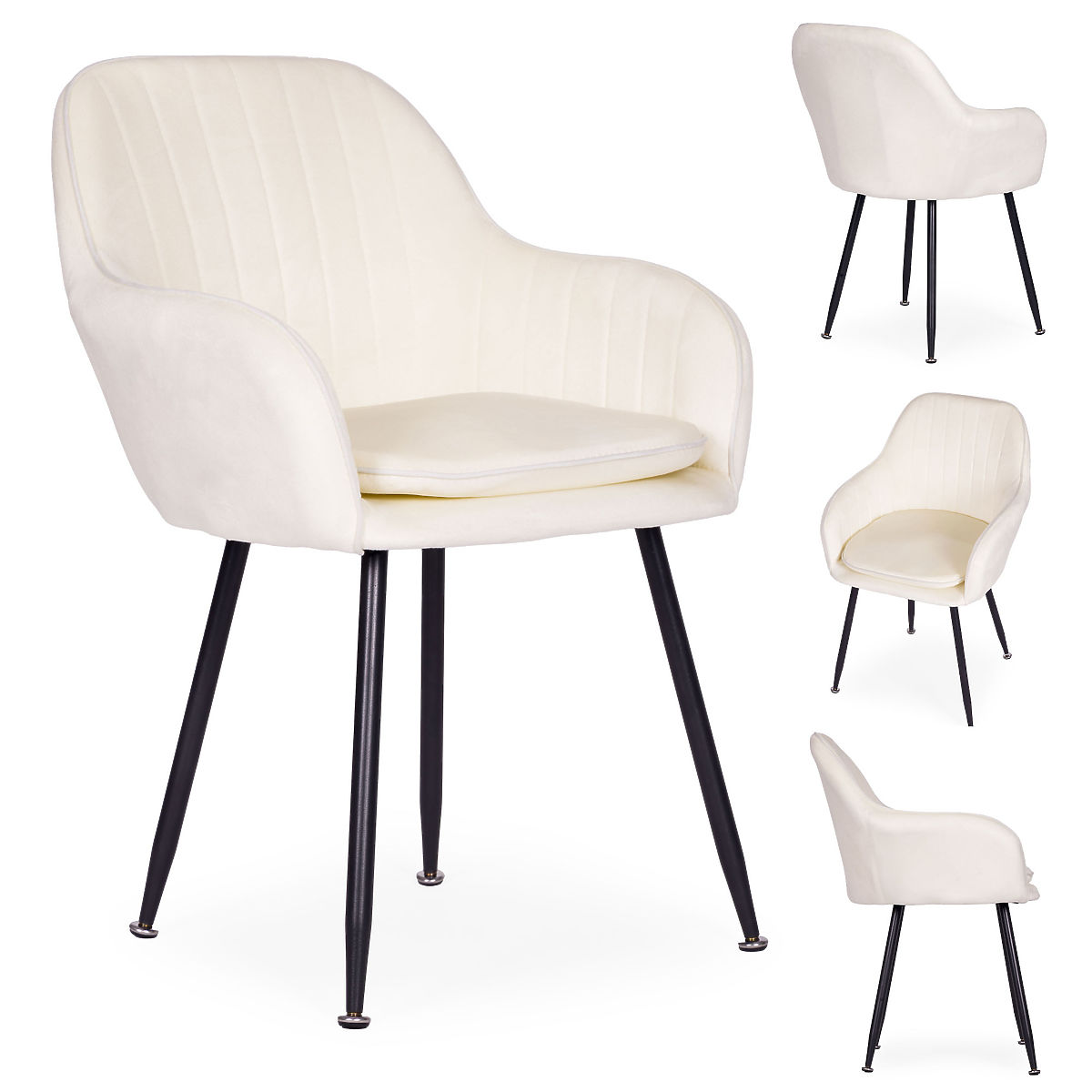 Lukahome.hr » Blagovaonica i kuhinja / Blagovaonske stolice / Tapecirana moderna baršunasta stolica za blagovaonicu i dnevni boravak krem ModernHome