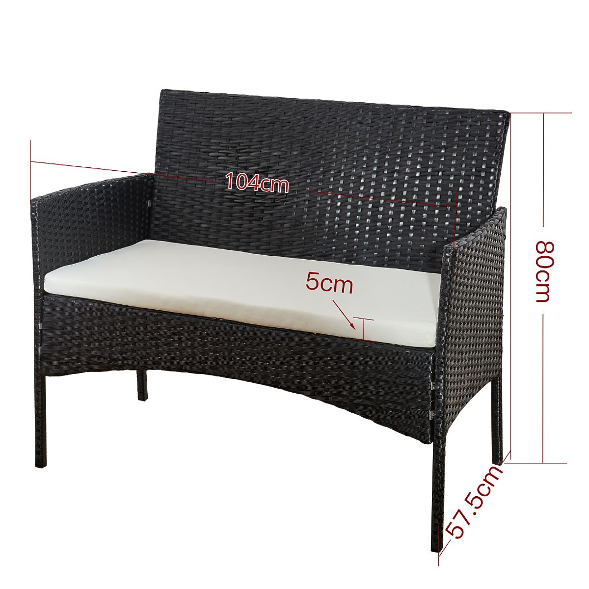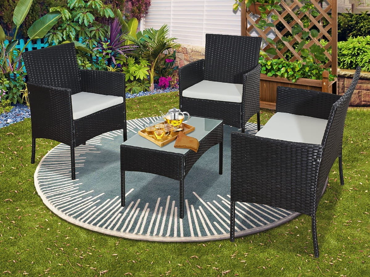 Balkonski set od tehno ratana (Sofa + 2 x fotelja + stol) COMODO crna