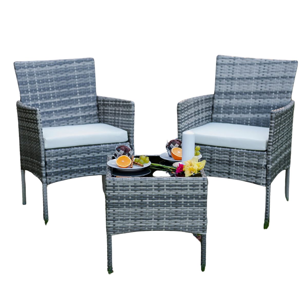 Set balkonskog namještaja (2 x fotelja + stol) SANO sivi tehnoratan