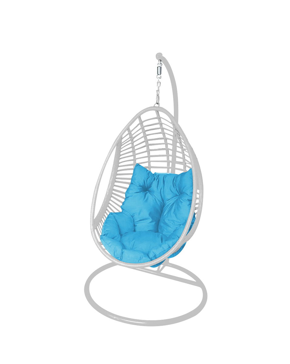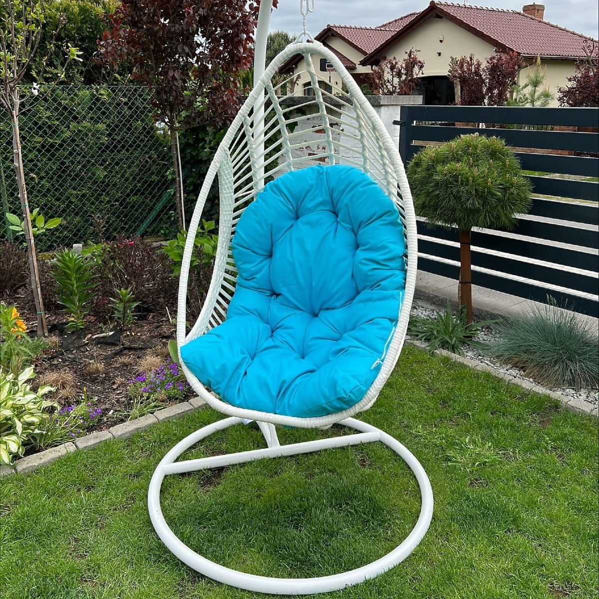 Viseća stolica BELLISSIMO (stolica + okvir) od bijelog tehno ratana s plavim jastukom, presvlaka GRA