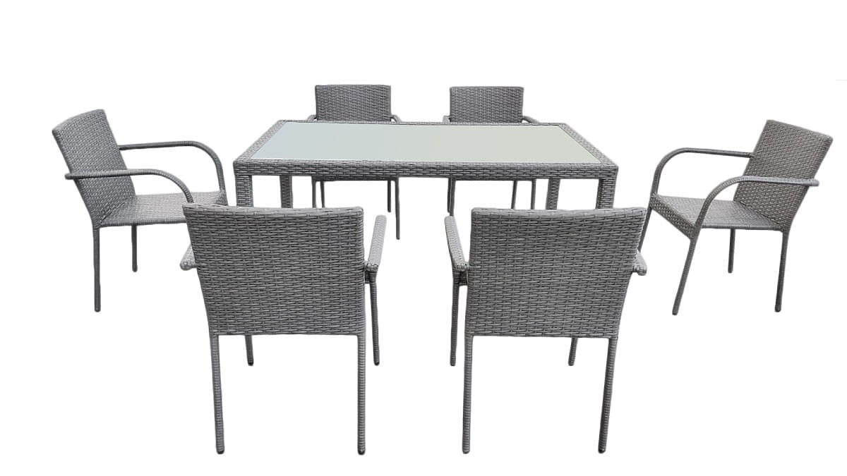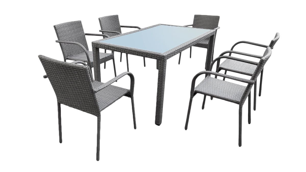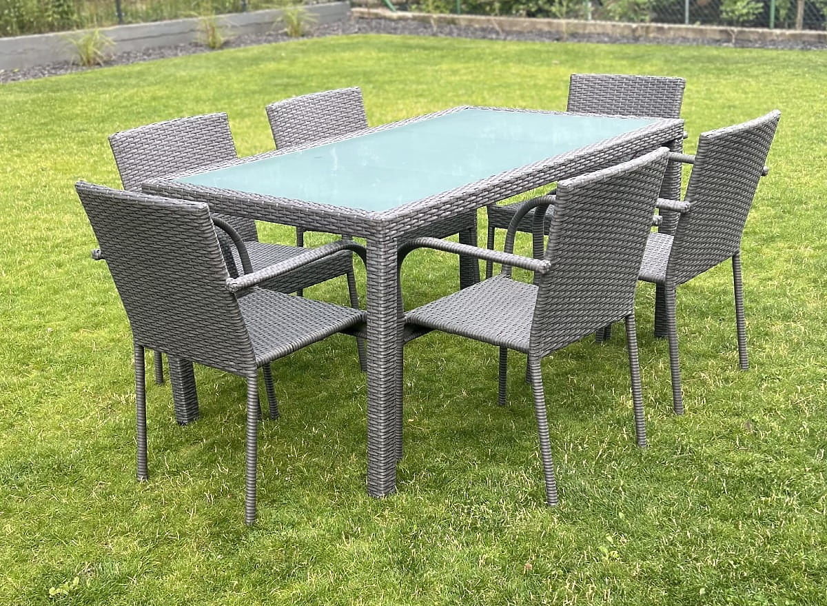 Set blagovaonskog namještaja od tehnoratana (stol 150x90cm + 6 stolica) AVVICENTE siva