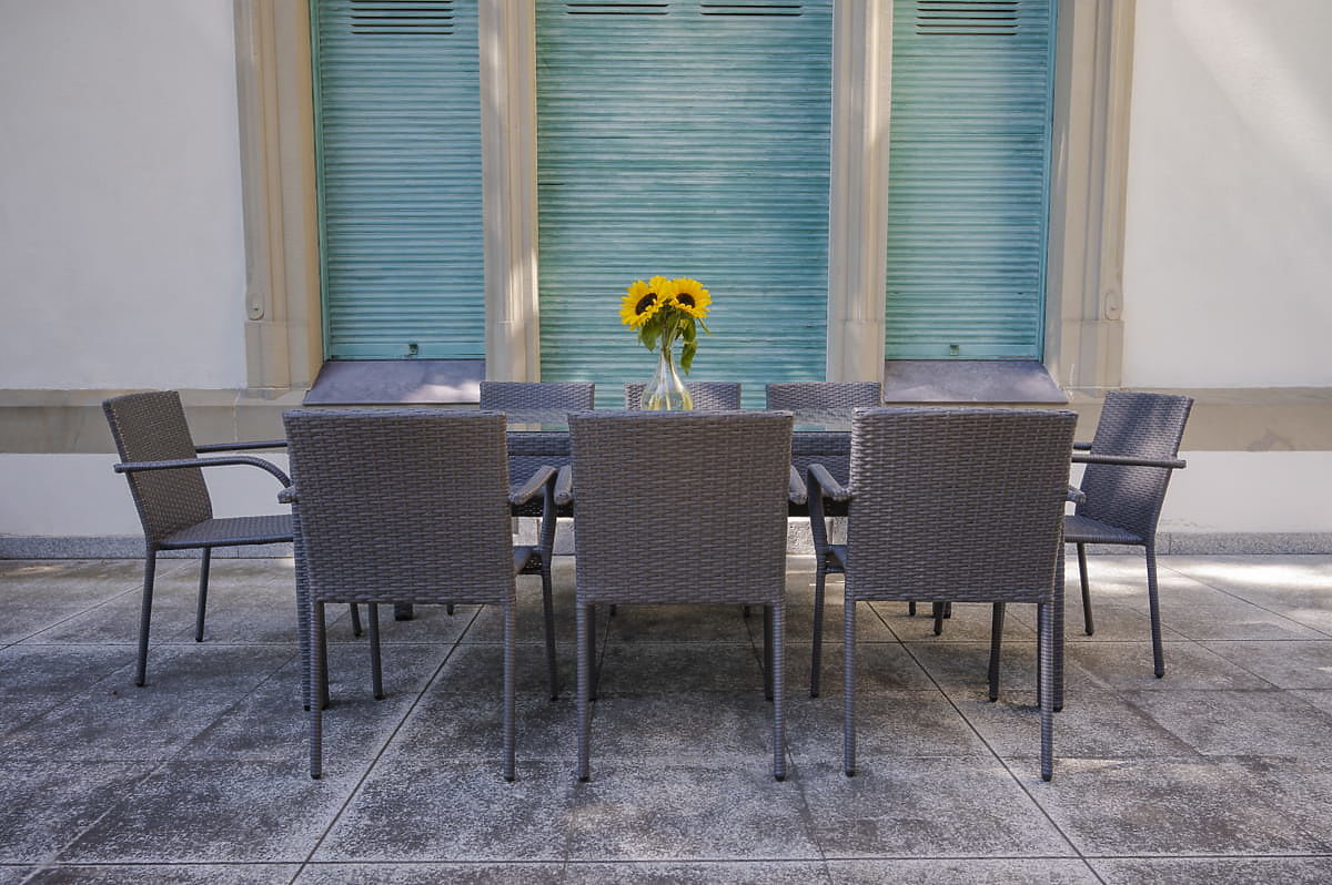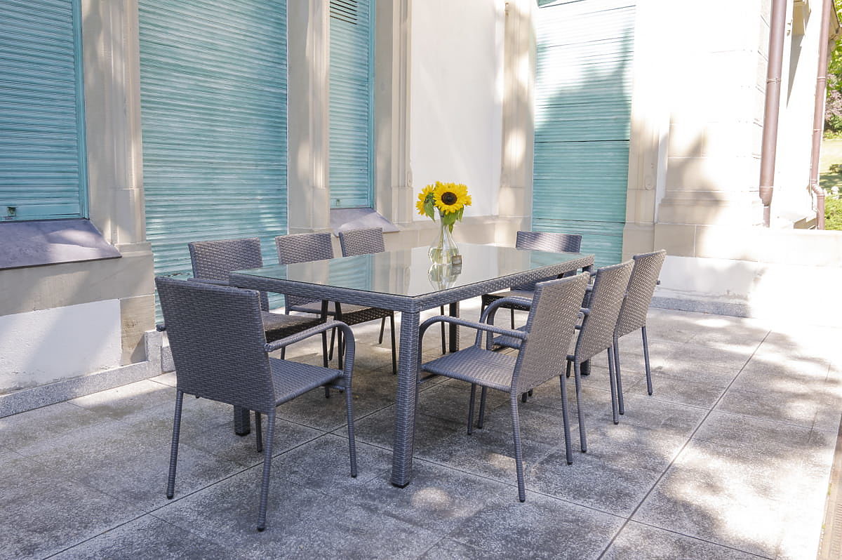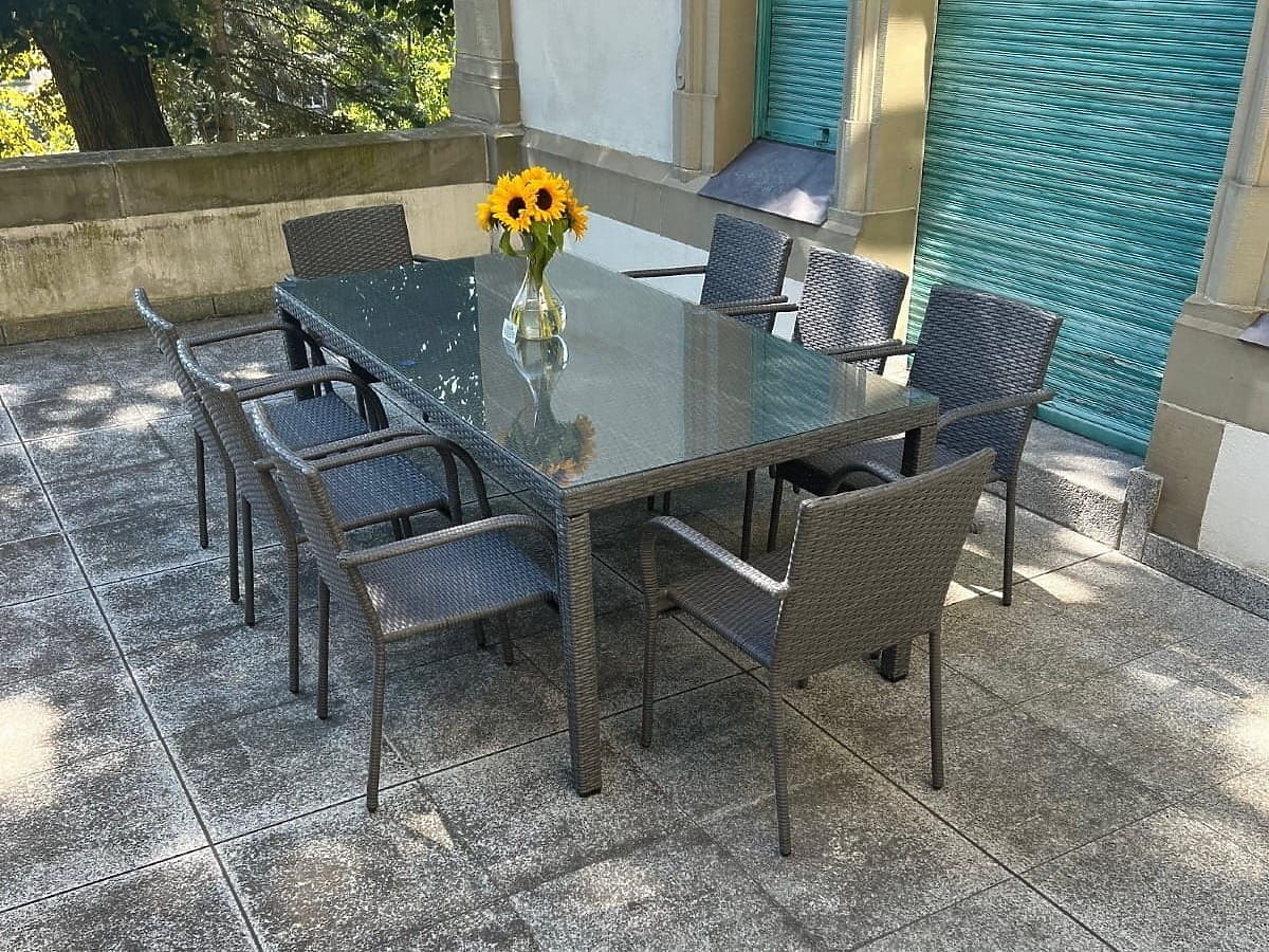 Blagovaonska garnitura SOTTILE dizajnirana je za ljubitelje elegantnih okupljanja u krugu najbližih i predstavlja savršenu kombinaciju stila i udobnosti. Njegov izuzetno elegantan namještaj bit će ne samo sjajan ukras svakog vrta ili terase, već će također pružiti izvanredne uvjete za provođenje vremena na svježem zraku. Vrtni namještaj od tehnoratana izrađen je s izvanrednom preciznošću, što naglašava njegov luksuzni karakter, a korištenje visokokvalitetnog tehnoratana jamči ne samo otpornost na kišu i štetno UV zračenje, već i trajnost i jednostavno održavanje. Terasna garnitura SOTTILE s praktičnim materijalom i promišljenim dizajnom nije samo praktično, već i estetsko rješenje koje će očarati svakoga tko cijeni spoj modernosti s tradicionalnom elegancijom u uređenju vanjskih prostora. Boja garniture SOTTILE: siva, četkana struktura Pletenina: tehnoratan 7-8mm x 1,2mm Konstrukcija namještaja: stol – aluminij, stolice – čelik Garnitura se sastoji od 9 elemenata: 1 x stol: duljina: 200 cm širina: 100 cm visina: 74 cm staklena, prozirna ploča izrađena od 5 mm sigurnosnog stakla, postavljena na pleteninu od tehnoratana 8 x stolica: širina: 56 cm dubina: 50 cm visina: 84 cm visina od poda do sjedala: 44 cm visina naslona od sjedala: 43 cm širina sjedala: 40 cm dubina sjedala: 43 cm Garnitura se šalje na 1 paleti dimenzija 120x80x210 cm, težina 80 kg Stolice se mogu odmah koristiti nakon vađenja iz kutija. Stolice su složive (mogućnost umetanja jedne u drugu), što olakšava skladištenje i namještaj ne zauzima puno prostora. Stol je namijenjen jednostavnoj, samostalnoj montaži prema priloženim uputama. Staklena ploča stola pričvršćena je na silikonske usisne čašice koje je štite od pomicanja. Mogućnost kupnje jastuka za stolice ovdje. Tehnoratan je otporan na štetne vremenske uvjete, no za dulje očuvanje nepromijenjenog izgleda namještaja preporučujemo kupnju zaštitnog pokrova. Pokrov u tamnosivoj boji je jednodijelan i ima dolje vezicu za stezanje. Svi pokrovi su šivani po narudžbi i vrijeme izrade je oko 14 radnih dana. Zamislite vrtni namještaj koji nadmašuje vaša očekivanja u svakom pogledu – od otpornosti do dizajna. To je BELLO GIARDINO, gdje svaki detalj ima značenje i luksuz se susreće s funkcionalnošću: Nepromjenjiva kvaliteta: Naš sintetički ratan jamči da će namještaj trajati godinama, ne gubeći na ljepoti ili trajnosti. Otpornost na vremenske uvjete: Naš namještaj suočava se s najtežim vremenskim uvjetima, od užarenog sunca do ledenih zima, ostajući i dalje lijep. Luksuzna udobnost: Debeli, mekani jastuci pozivaju na opuštanje, nudeći udobnost koju je teško pronaći drugdje. Lakoća i čvrstoća: Aluminijska konstrukcija spaja najbolje od oba svijeta – lagana je, ali izuzetno stabilna. Dizajn koji očarava: Svaki element našeg namještaja dizajniran je s obzirom na estetiku i funkcionalnost, kako bi se uklopio u svako okruženje. Bilo da ste ljubitelj minimalizma ili cijenite bogate, elegantne aranžmane, naš namještaj ispunjava vaša očekivanja, prelazeći granice uobičajene funkcionalnosti i estetike. Osiguravamo da čak ni najzahtjevniji kupci neće odoljeti udobnosti i stilu koji nudi BELLO GIARDINO. Pretvorite svoj vrt, terasu ili balkon u oazu opuštanja i elegancije koju ste oduvijek željeli imati. Ne čekajte, otkrijte BELLO GIARDINO već danas i pretvorite svoje vanjske prostore u mjesta o kojima ste oduvijek sanjali. Fotografije namještaja od naših kupaca: