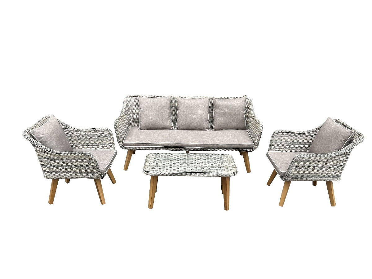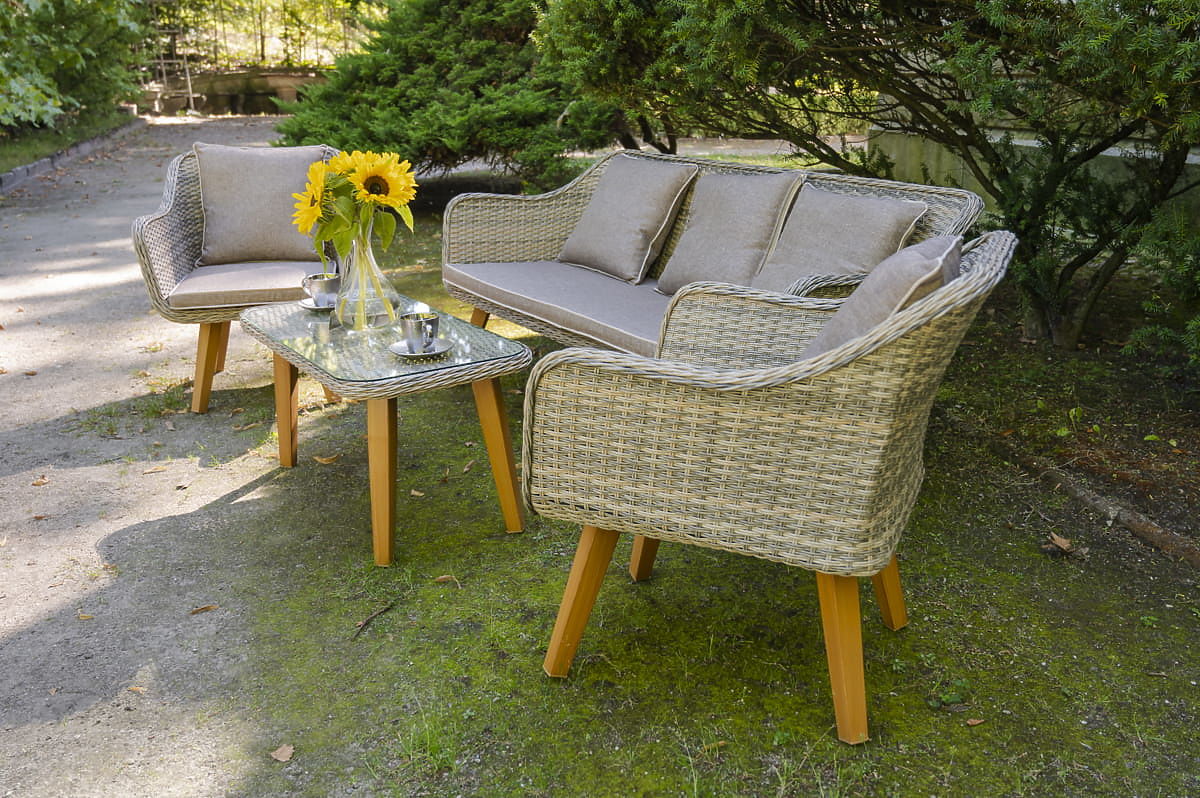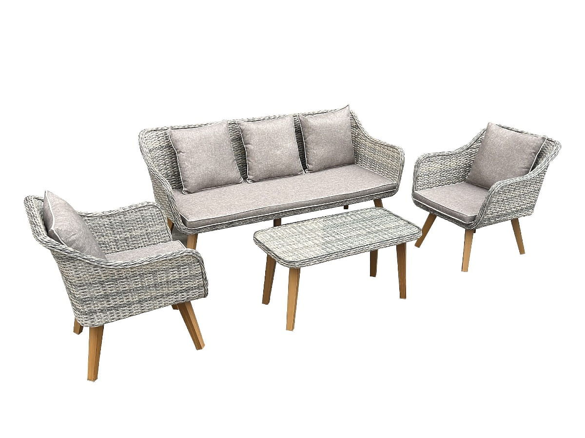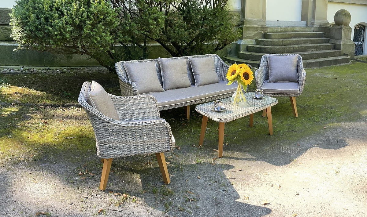 Vrtni namještaj od tehnoratana (velika trosjedna sofa + 2 fotelje + stolić) LARGO Siva mješavina