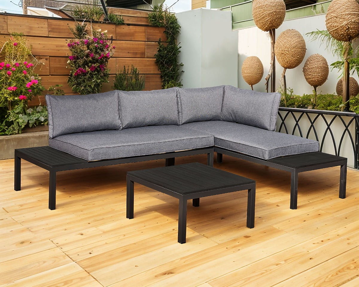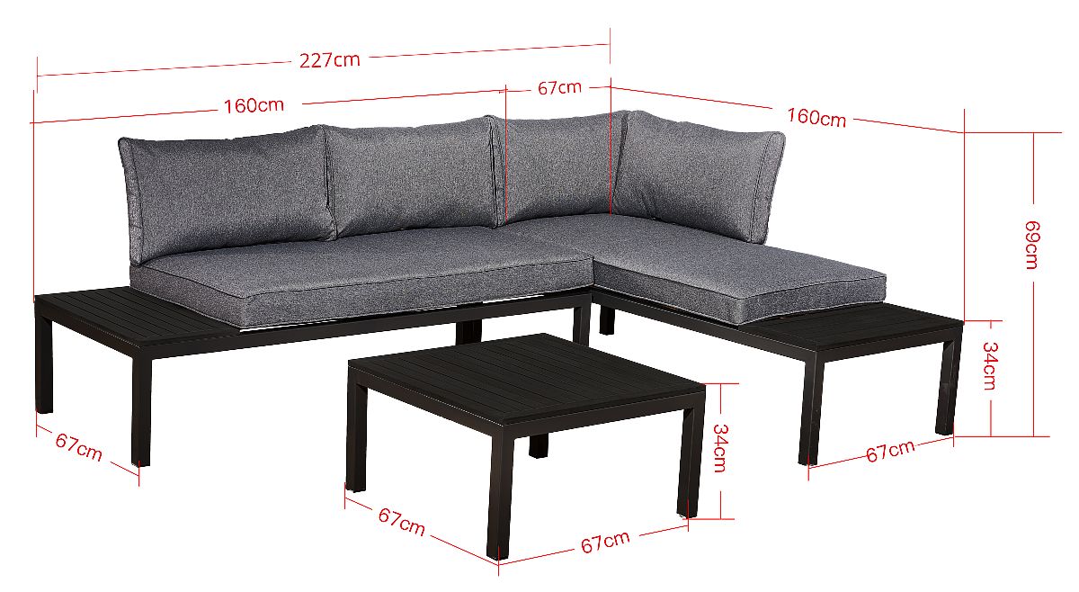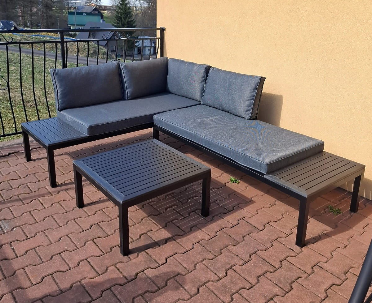 VENTO je investicija u trajnost i udobnost. Izrađen od visokokvalitetnog čelika otpornog na vremenske uvjete, ovaj set će vam služiti dugi niz godina. Mekani jastuci i ergonomski oblik osiguravaju udobnost tijekom opuštanja. Idealna opcija za one koji cijene praktična rješenja. Boja seta VENTO: crna Boja jastuka: siva Konstrukcija namještaja: čelična Kutna sofa je modularna, što omogućuje postavljanje u bilo kojoj konfiguraciji (lijevo/desno). Set se sastoji od 3 elementa: 2 x bočni modul (desni i lijevi): širina: 160 cm dubina: 67 cm visina: 69 cm 1 x stolić: duljina: 67 cm širina: 67 cm visina: 34 cm Jastuci u sivoj boji za sjedala i naslone su uključeni u set (2 kom za sjedala, 4 kom za naslone). Debljina jastuka za sjedala: 8 cm. Zamislite vrtni namještaj koji nadmašuje vaša očekivanja u svakom pogledu – od izdržljivosti do dizajna. Ovo je BELLO GIARDINO, gdje svaki detalj ima značaj, a luksuz se susreće s funkcionalnošću: Nepromjenjiva kvaliteta: Naš sintetički ratan jamči da će namještaj trajati godinama, bez gubitka ljepote ili trajnosti. Otpornost na vremenske uvjete: Naš namještaj podnosi najteže vremenske uvjete, od užarenog sunca do ledenih zima, ostajući uvijek lijep. Luksuzna udobnost: Debeli, mekani jastuci pozivaju na opuštanje, nudeći udobnost koju je teško pronaći drugdje. Lakoća i čvrstoća: Aluminijska konstrukcija spaja najbolje iz oba svijeta – lagana je, ali izuzetno stabilna. Dizajn koji impresionira: Svaki element našeg namještaja dizajniran je s obzirom na estetiku i funkcionalnost, kako bi se uklopio u bilo koje okruženje. Bilo da ste ljubitelj minimalizma ili cijenite bogate, elegantne aranžmane, naš namještaj će ispuniti vaša očekivanja, prelazeći granice uobičajene funkcionalnosti i estetike. Osiguravamo da čak i najzahtjevniji kupci ne mogu odoljeti udobnosti i stilu koji nudi BELLO GIARDINO. Pretvorite svoj vrt, terasu ili balkon u oazu opuštanja i elegancije koju ste oduvijek željeli imati. Ne čekajte, otkrijte BELLO GIARDINO već danas i pretvorite svoje vanjske prostore u mjesta o kojima ste oduvijek sanjali.