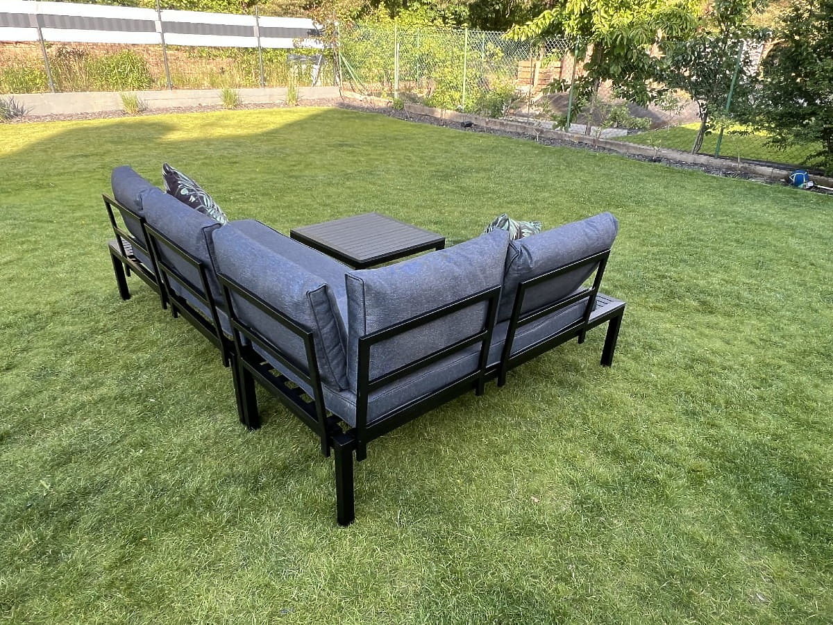 Otkrijte udobnost i stil s ovim vrtnim kutnim setom! Njegova čvrsta čelična konstrukcija jamči godine korištenja, a crni, drveni akcenti ne samo da dodaju šarm, već i štite od vremenskih nepogoda. Dizajniran s obzirom na vaš odmor, opremljen je mekanim jastucima od visokokvalitetne pjene koji pružaju nenadmašnu udobnost. Ovaj set namještaja je investicija u prekrasan i funkcionalan vrt koji će vam služiti mnogo sezona. Boja seta VENTO: crna Boja jastuka: siva Konstrukcija namještaja: čelična Kutni set je modularan, što omogućuje njegovo postavljanje u bilo kojoj konfiguraciji (lijevo/desno). Set se sastoji od 3 elementa: 2 x bočni modul (desni i lijevi): širina: 160 cm dubina: 67 cm visina: 69 cm 1 x stol: duljina: 67 cm širina: 67 cm visina: 34 cm Jastuci sive boje za sjedala i naslone uključeni su u set (2 kom za sjedala, 5 kom za naslone). Debljina jastuka za sjedalo: 8 cm. Zamislite vrtni namještaj koji nadmašuje vaša očekivanja u svakom pogledu – od izdržljivosti do dizajna. Ovdje je BELLO GIARDINO, gdje svaki detalj ima značenje, a luksuz se susreće s funkcionalnošću: Nepromjenjiva kvaliteta: Naš sintetički ratan jamči da će namještaj trajati godinama, bez gubitka ljepote ili izdržljivosti. Otpornost na vremenske uvjete: Naš namještaj podnosi najteže vremenske uvjete, od užarenog sunca do ledenih zima, ostajući i dalje lijep. Luksuzna udobnost: Debeli, mekani jastuci pozivaju na opuštanje, nudeći udobnost koju je teško pronaći drugdje. Lakoća i izdržljivost: Aluminijska konstrukcija spaja najbolje od oba svijeta – lagana je, ali iznimno stabilna. Dizajn koji očarava: Svaki element našeg namještaja dizajniran je s obzirom na estetiku i funkcionalnost, kako bi se uklopio u bilo koje okruženje. Bilo da ste ljubitelj minimalizma ili cijenite bogate, elegantne aranžmane, naš namještaj će ispuniti vaša očekivanja, prelazeći granice uobičajene funkcionalnosti i estetike. Jamčimo da čak ni najzahtjevniji kupci neće odoljeti udobnosti i stilu koji nudi BELLO GIARDINO. Pretvorite svoj vrt, terasu ili balkon u oazu opuštanja i elegancije koju ste oduvijek željeli imati. Ne čekajte, otkrijte BELLO GIARDINO još danas i pretvorite svoje vanjske prostore u mjesta o kojima ste oduvijek sanjali.