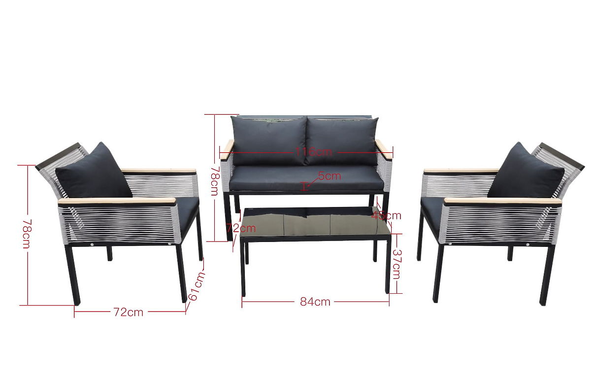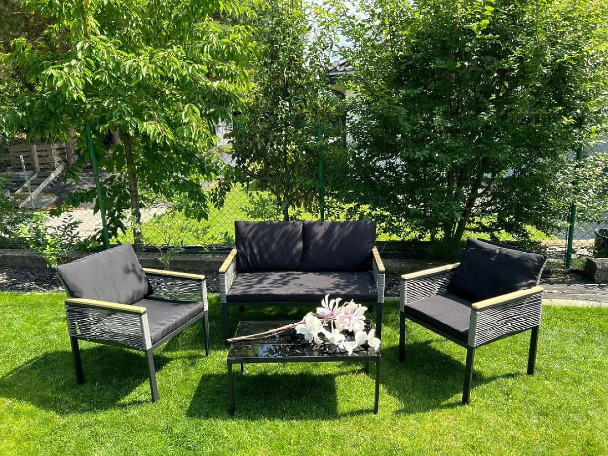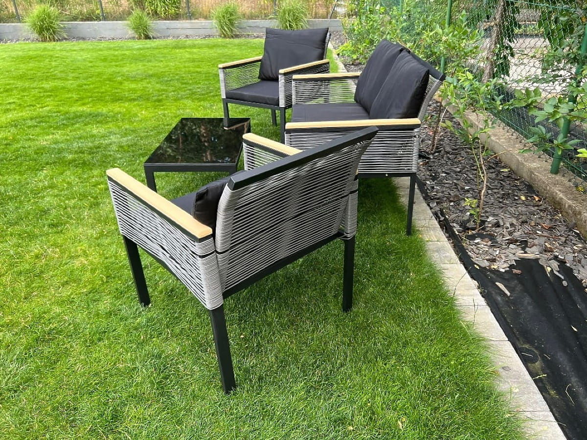 Ovaj set namještaja je kvintesencija udobnosti i dizajna, pozivnica za stvaranje jedinstvene oaze mira u vašem vrtu, na terasi ili balkonu. Idealan je izbor za one koji žele pretvoriti svoj vanjski prostor u remek-djelo funkcionalnosti i estetike. Ovaj izuzetno originalan set, karakteriziran kompaktnošću, savršeno se uklapa i u najudobnije kutke. Izrađen od aluminija, otporan na vremenske uvjete, što jamči njegovu fenomenalnu izdržljivost i besprijekoran sjaj dugi niz godina. Ako sanjate o savršenom spoju elegancije, pouzdanosti i duboke relaksacije na svježem zraku, ovaj set je pravi pogodak. Postat će ikona stila vaše vanjske aranžacije, osvjetljavajući je jedinstvenim karakterom i pozivajući na beskrajne trenutke odmora. Boja seta CORTO: crna, jednobojna Pletenina: okrugli tehnoratan Konstrukcija namještaja: aluminijska (zahtijeva jednostavnu montažu) Nasloni za ruke završeni polivudom Set se sastoji od 4 dijela (nakon montaže): 2 x stolica: širina: 61 cm dubina: 72 cm visina: 78 cm 1 x sofa: širina: 116 cm dubina: 72 cm visina: 78 cm 1 x stol (ploča od polivuda): dužina: 84 cm širina: 45 cm visina: 37 cm Jastuci crne boje uključeni u set (3 komada za sjedišta, 4 komada za naslone). Svi imaju skidive navlake na patentni zatvarač, izrađene od vanjskog materijala (100% poliester), koje se mogu prati na niskim temperaturama. Navlake za jastuke izrađene su od visokokvalitetne tkanine premazane teflonom, koja ih štiti od vlage. Ispuna jastuka izrađena je od visokokvalitetne tapecirane pjene (srednje tvrdoće - T25), koja sprječava deformacije. Debljina jastuka: 5 cm Mogućnost šivanja jastuka po narudžbi za ovaj set: https://www.bg-meble.pl/pl/p/Usluga-Krawiecka-Poduszki-Na-Zamowienie-/742 Mogućnost šivanja navlaka za jastuke po narudžbi za ovaj set: https://www.bg-meble.pl/pl/p/Usluga-Krawiecka-Poszewki-Na-Zamowienie/743 Mogućnost narudžbe samo kompletnog seta. Set za samostalnu montažu prema priloženim uputama. Uz set dolazi kompletan set vijaka i ključeva. Tehnoratan je otporan na štetne vremenske uvjete, ali za još dulje očuvanje nepromijenjenog izgleda namještaja preporučujemo kupnju zaštitne navlake. Navlaka tamnosive boje je jednodijelna i ima donju vezicu provučenu kroz metalne ušice. Sve navlake su šivane po narudžbi, a rok isporuke je cca 14 radnih dana. Zamislite vrtni namještaj koji nadmašuje vaša očekivanja u svakom pogledu - od izdržljivosti do dizajna. Ovdje je BELLO GIARDINO, gdje svaki detalj ima značaj i luksuz se susreće s funkcionalnošću: Vječna kvaliteta: Naš sintetički ratan jamči da će namještaj trajati godinama, bez gubitka ljepote ili izdržljivosti. Otpornost na vremenske uvjete: Naš namještaj podnosi najzahtjevnije vremenske uvjete, od užarenog sunca do ledenih zima, ostajući uvijek lijep. Luksuzna udobnost: Debeli, mekani jastuci pozivaju na opuštanje, nudeći udobnost koju je teško pronaći drugdje. Lakoća i čvrstoća: Aluminijska konstrukcija spaja najbolje od oba svijeta - lagana je, ali izuzetno stabilna. Dizajn koji očarava: Svaki element našeg namještaja dizajniran je s obzirom na estetiku i funkcionalnost, kako bi se uklopio u bilo koje okruženje. Bilo da ste ljubitelj minimalizma ili cijenite bogate, elegantne aranžmane, naš namještaj će ispuniti vaša očekivanja, prelazeći granice obične funkcionalnosti i estetike. Osiguravamo da ni najzahtjevniji kupci neće odoljeti udobnosti i stilu koji nudi BELLO GIARDINO. Pretvorite svoj vrt, terasu ili balkon u oazu relaksacije i elegancije koju ste oduvijek željeli imati. Ne čekajte, otkrijte BELLO GIARDINO već danas i pretvorite svoje vanjske prostore u mjesta o kakvima ste oduvijek sanjali.