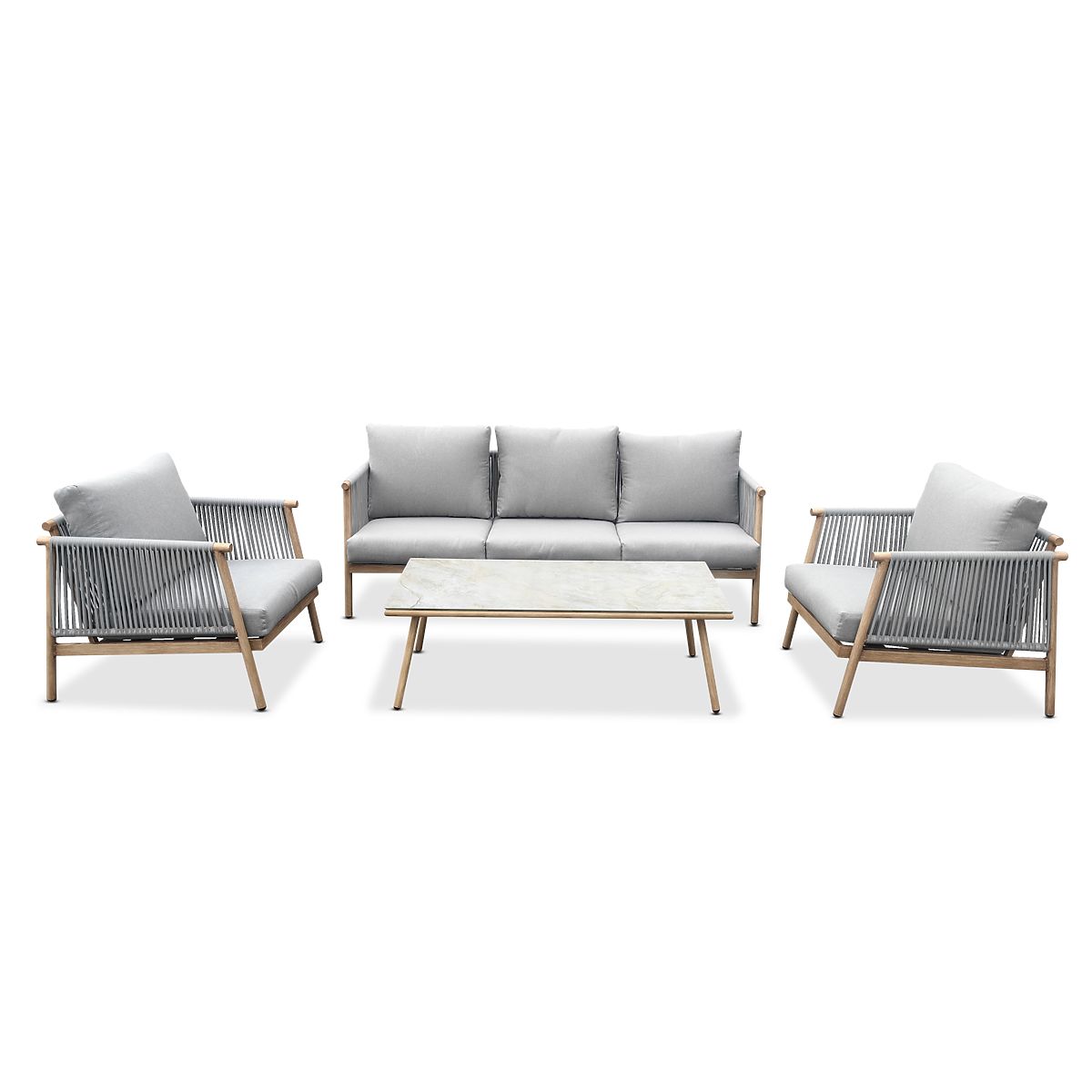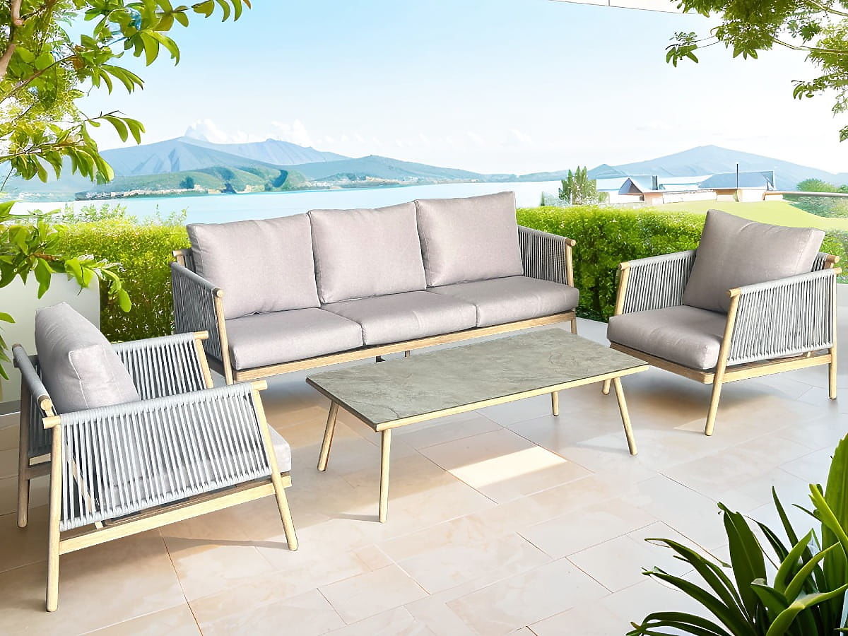 Aluminijski set vrtnog namještaja (Velika sofa, 2 x fotelja i stolić) BLANDO svijetlosiva, aluminij