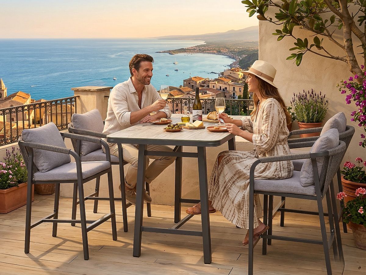 OČEKIVANA ISPORUKA POČETKOM TRAVNJA 2026. Set namještaja BREZZA je iznimna ponuda za one koji žele unijeti modernu, klupsku atmosferu u svoj vrt, na terasu ili patio. Ovaj ekskluzivni komplet odlikuje se netipičnim oblikom za vrtni namještaj – sastoji se od visokog barskog stola i četiri udobne barske stolice. To je idealno rješenje za proslave ljetnih večeri uz piće, grickalice ili opuštene razgovore među prijateljima. Višeslojno sjedalo s pjenom odgovarajuće gustoće i mekani naslon osiguravaju da čak i visoke stolice postanu sinonim za opuštanje. Velika ploča stola dimenzija 150 x 90 cm pruža mnogo prostora za posuđe i dekoracije, stvarajući središnju točku svake vanjske zabave. Tehnička specifikacija: Naziv modela: BREZZA Tip seta: Barski set (visoki stol + 4 barske stolice) Dimenzije stola: Duljina: 150 cm Širina: 90 cm Visina: 101 cm Dimenzije barske stolice: Širina: 60 cm Dubina: 64 cm Visina: 99 cm Jastuci: Sjedalo: Debljina 5 cm, višeslojna konstrukcija koja osigurava trajnost i udobnost (1 cm polipropilen 350 g + 3 cm pjena/guma 20D + 1 cm polipropilen 350 g). Naslon: Ispuna od mekane PP pamuka koja se savršeno prilagođava leđima. Odabirom seta BREZZA birate neobičan stil i funkcionalnost koja će promijeniti karakter vašeg vanjskog prostora. To je namještaj koji poziva na zajedničko provođenje vremena na svježem zraku, spajajući slobodu barske atmosfere s udobnošću doma. Stvorite svoju privatnu zonu za opuštanje koja će očarati goste i postati omiljeno mjesto ljetnih okupljanja.