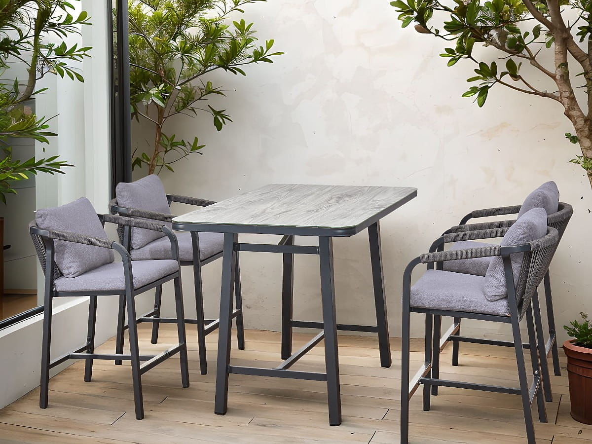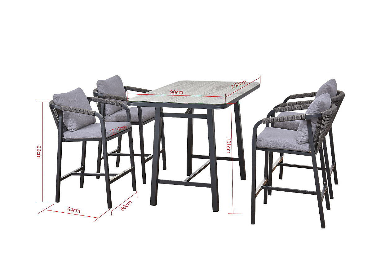 Set vrtnog namještaja (4 barske stolice + visoki stol) BREZZA siva