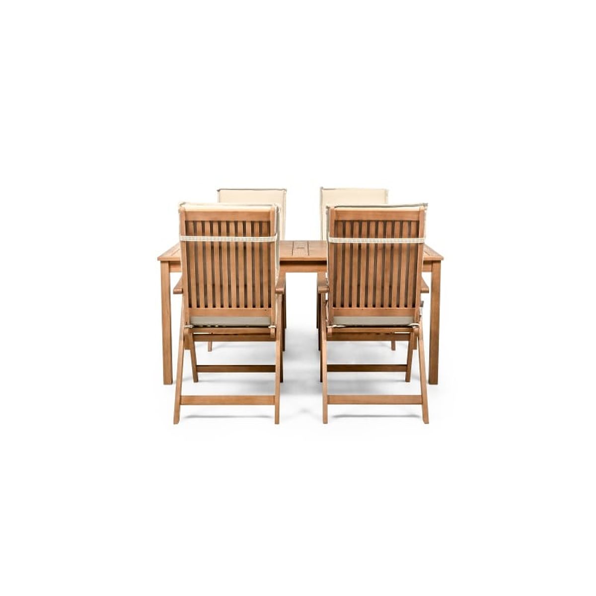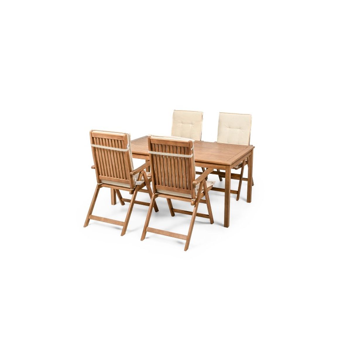 Lukahome.hr » Vrtni namještaj / Vrtni setovi / Vrtni set Familis stol 160 cm + 4 stolice s podesivim naslonima i krem jastucima, drvo
