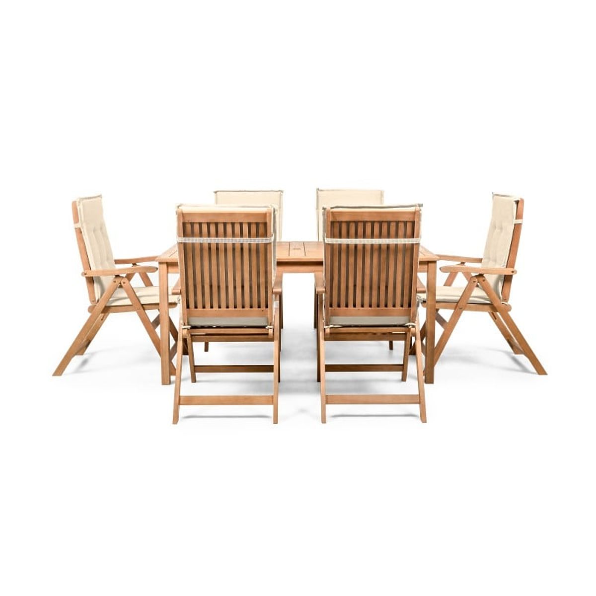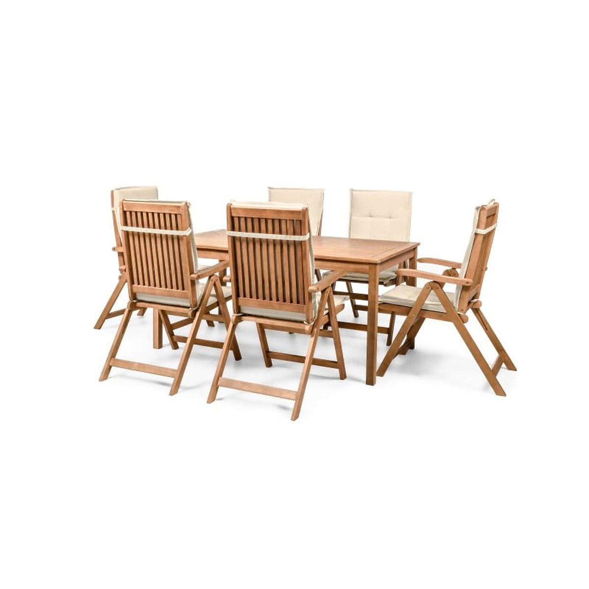 Lukahome.hr » Vrtni namještaj / Vrtni setovi / Vrtni set Familis stol 160 cm + 6 stolica s podesivim naslonima i krem jastucima, drvo