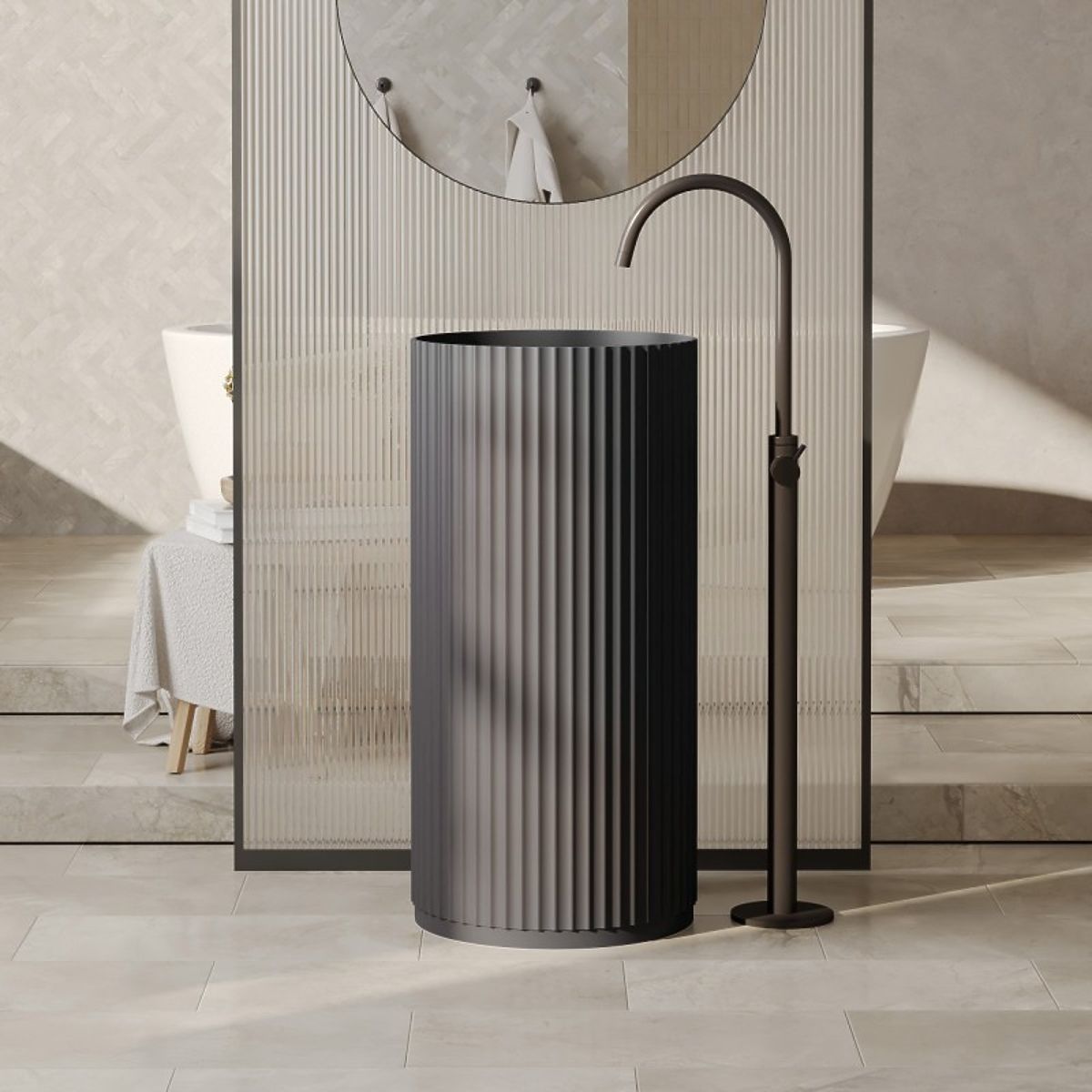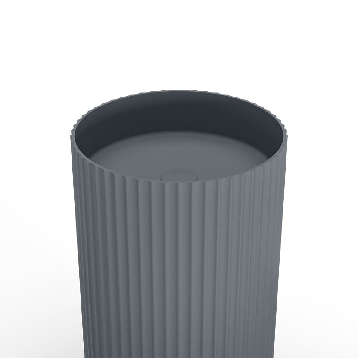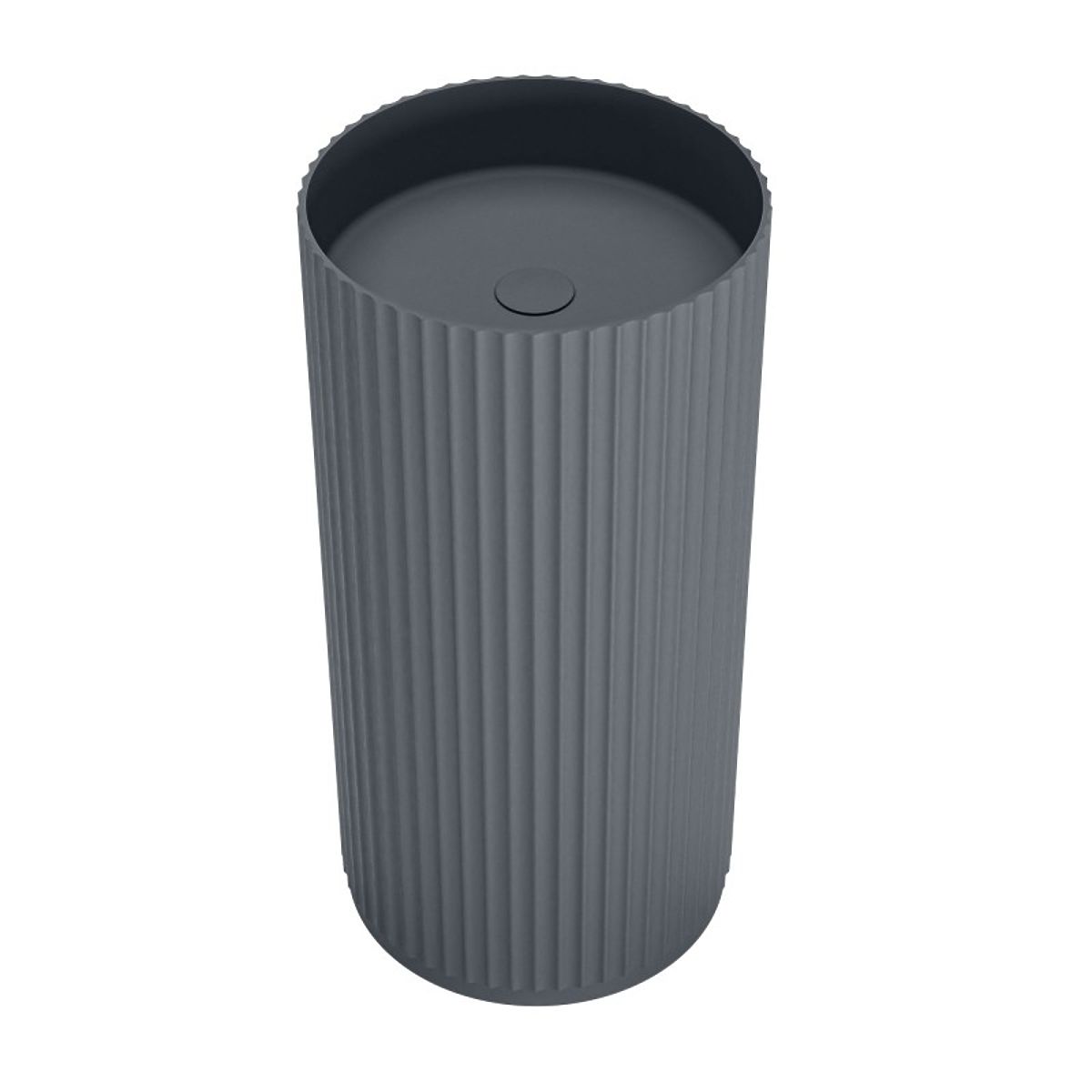 Samostojeći umivaonik s rebrastom površinom i tamno sivom bojom. .. više