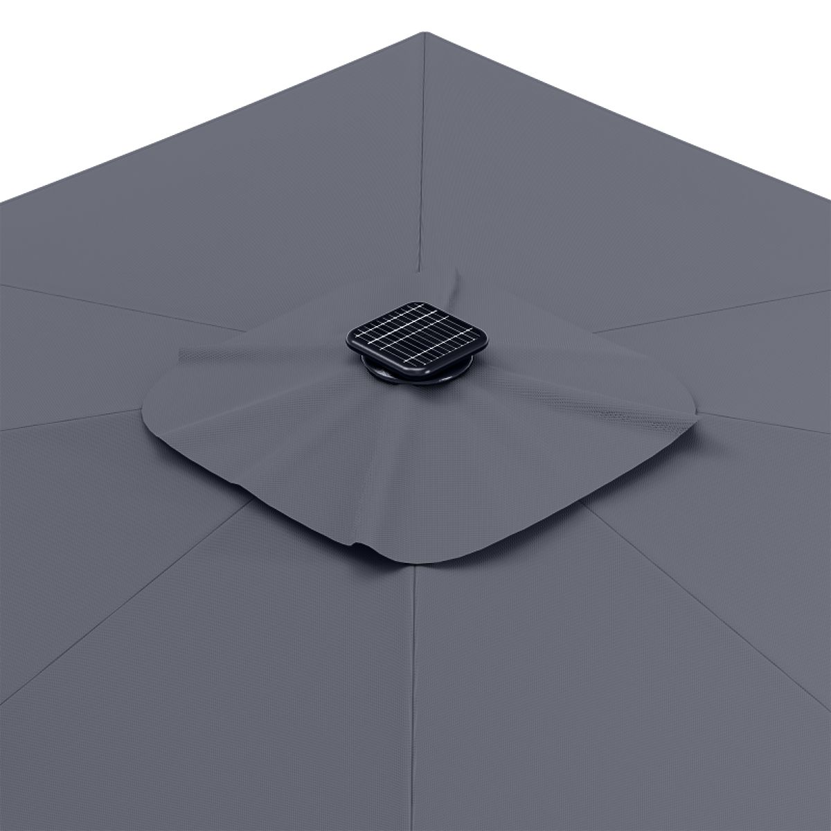 Suncobran Shade Deluxe pruža vam potpunu kontrolu nad opuštanjem – rotacija od 360° i podešavanje kuta nagiba osiguravaju sjenu točno tamo gdje vam je potrebna. Solarno LED osvjetljenje omogućuje uživanje u večernjem odmoru u ugodnom svjetlu, dok čvrsta konstrukcija i izdržljiv pokrov jamče udobnost i trajnost dugi niz godina.
