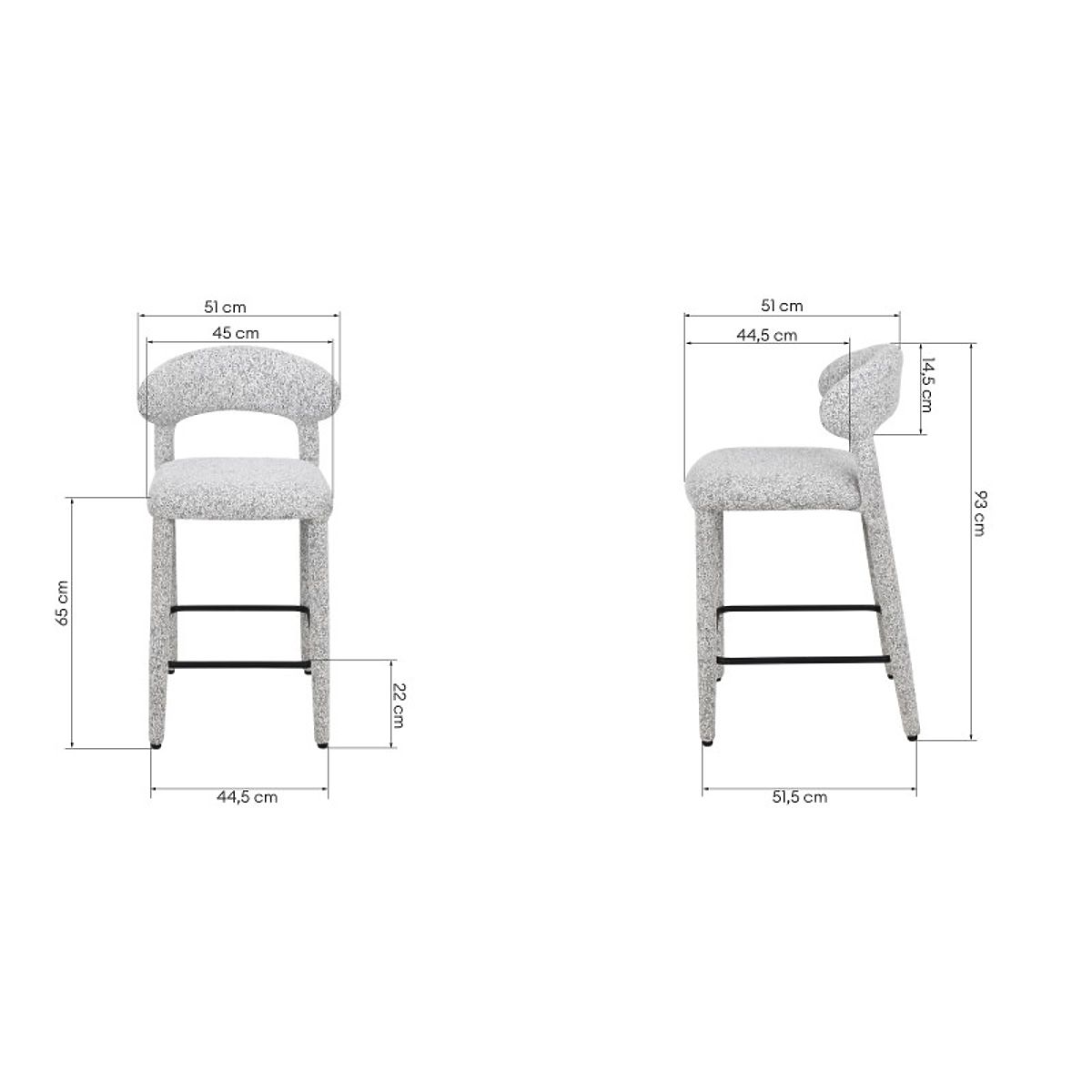 Barska stolica Hiroki je stilski i funkcionalan izbor koji se savršeno uklapa uz kuhinjski otok, stvarajući udobno mjesto za konzumaciju obroka. Njeno melange presvlake s višebojnim uzorkom dodaju interijeru ugodan i elegantan karakter.