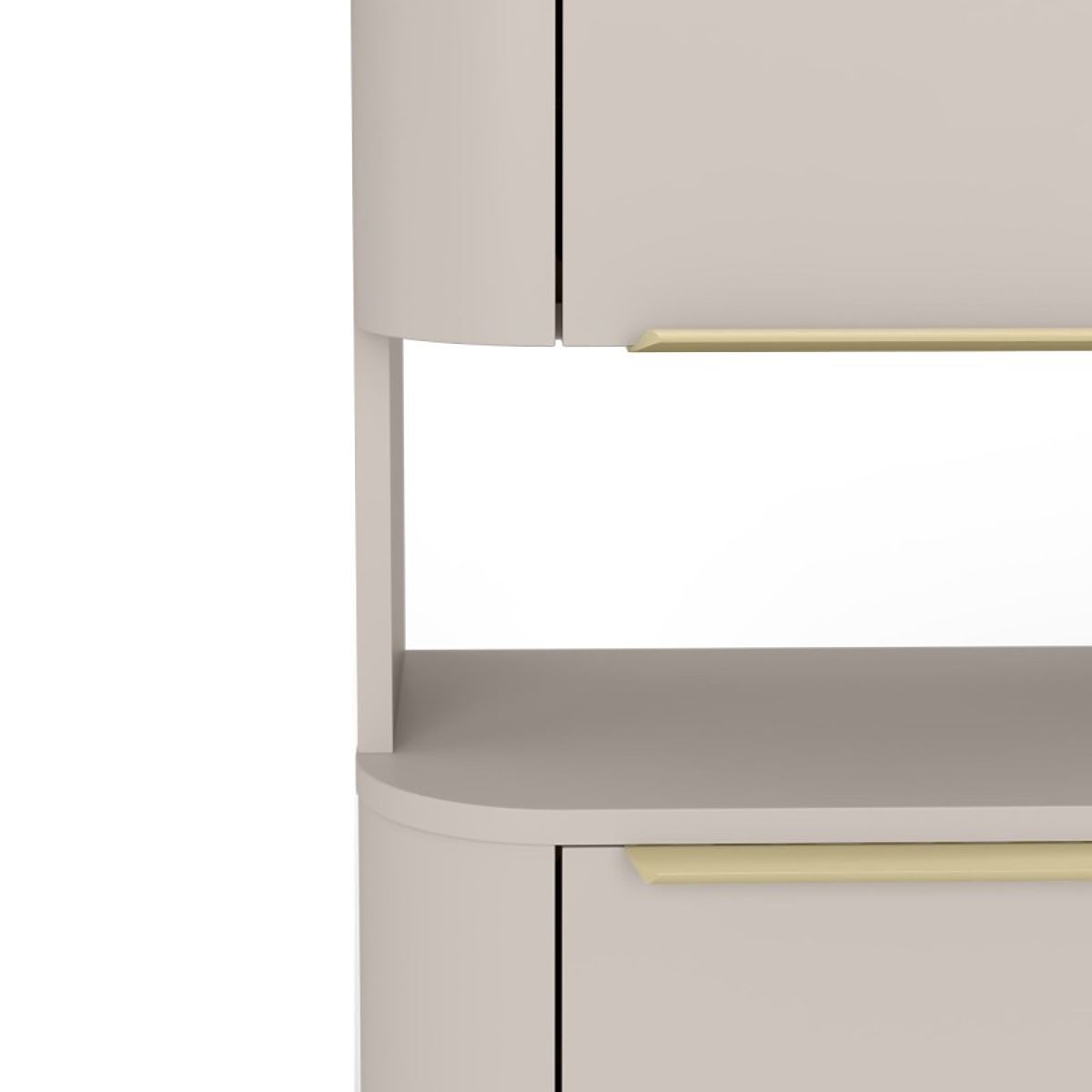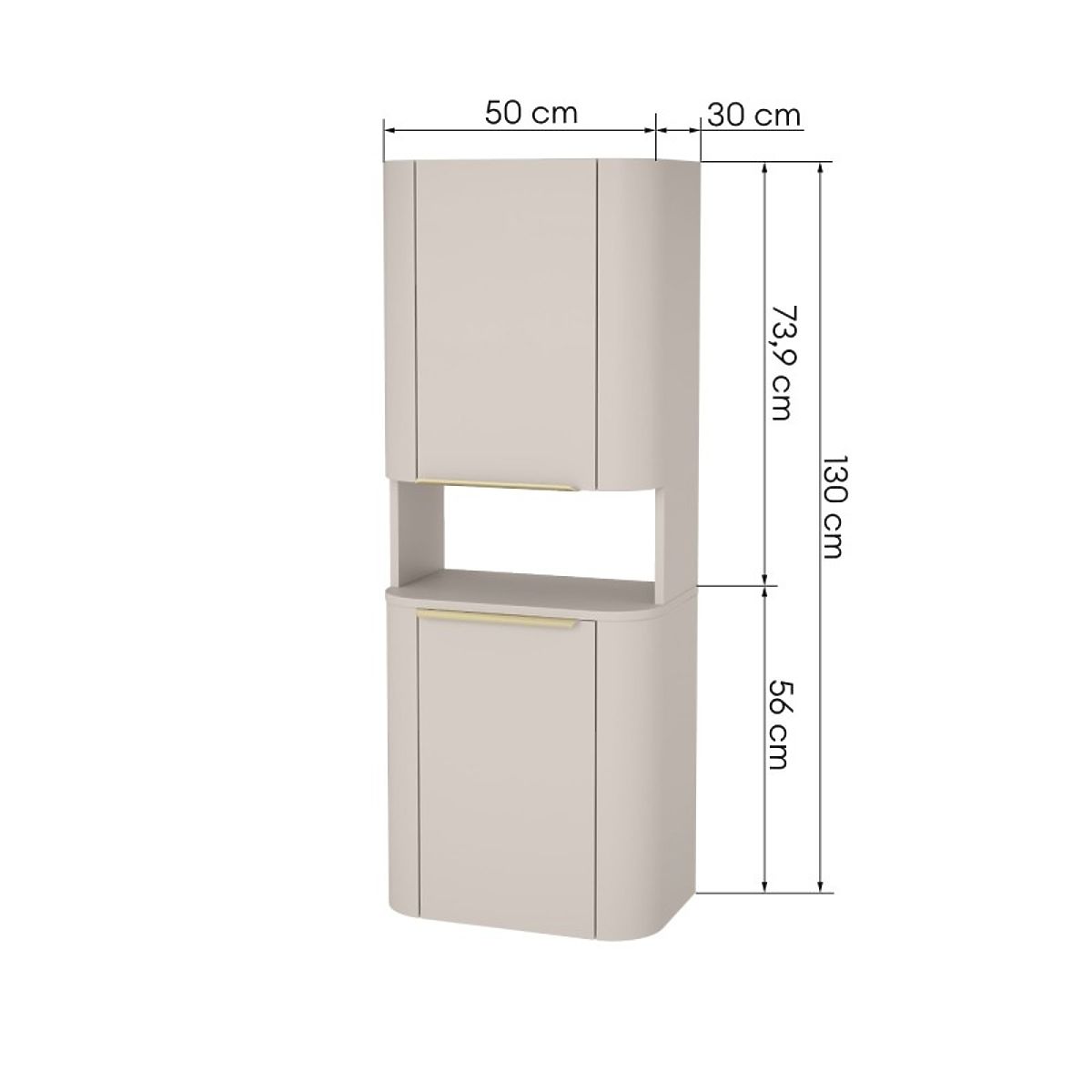 Upoznajte kupaonski stup Bassa, koji spaja nježnu eleganciju s iznimnom funkcionalnošću. Njegova moderna kašmir nijansa i zaobljeni oblici, obogaćeni zlatnim ručkama, unijet će u vašu kupaonicu neobičnu atmosferu.