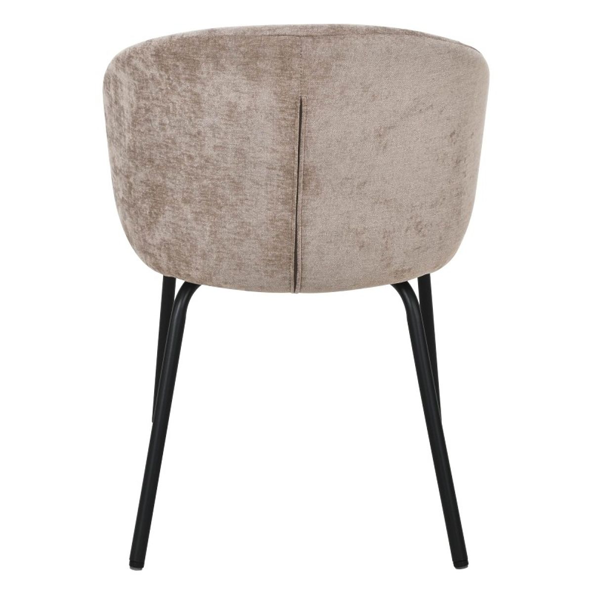 Stolica Larisa kombinira modernu eleganciju s udobnošću. Njeno meko sjedalo i zaobljeni naslon presvučeni su ugodnom smeđom tkaninom koja svakom interijeru daje toplinu. Crne, čvrste noge pružaju izražajan kontrast i stabilnost, naglašavajući njen stilski karakter.