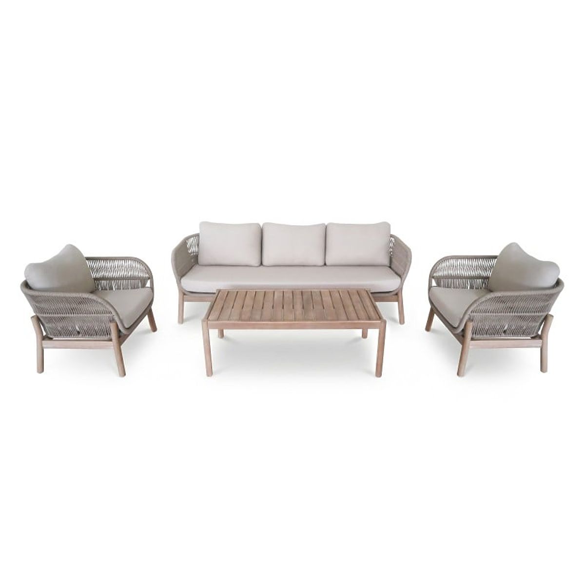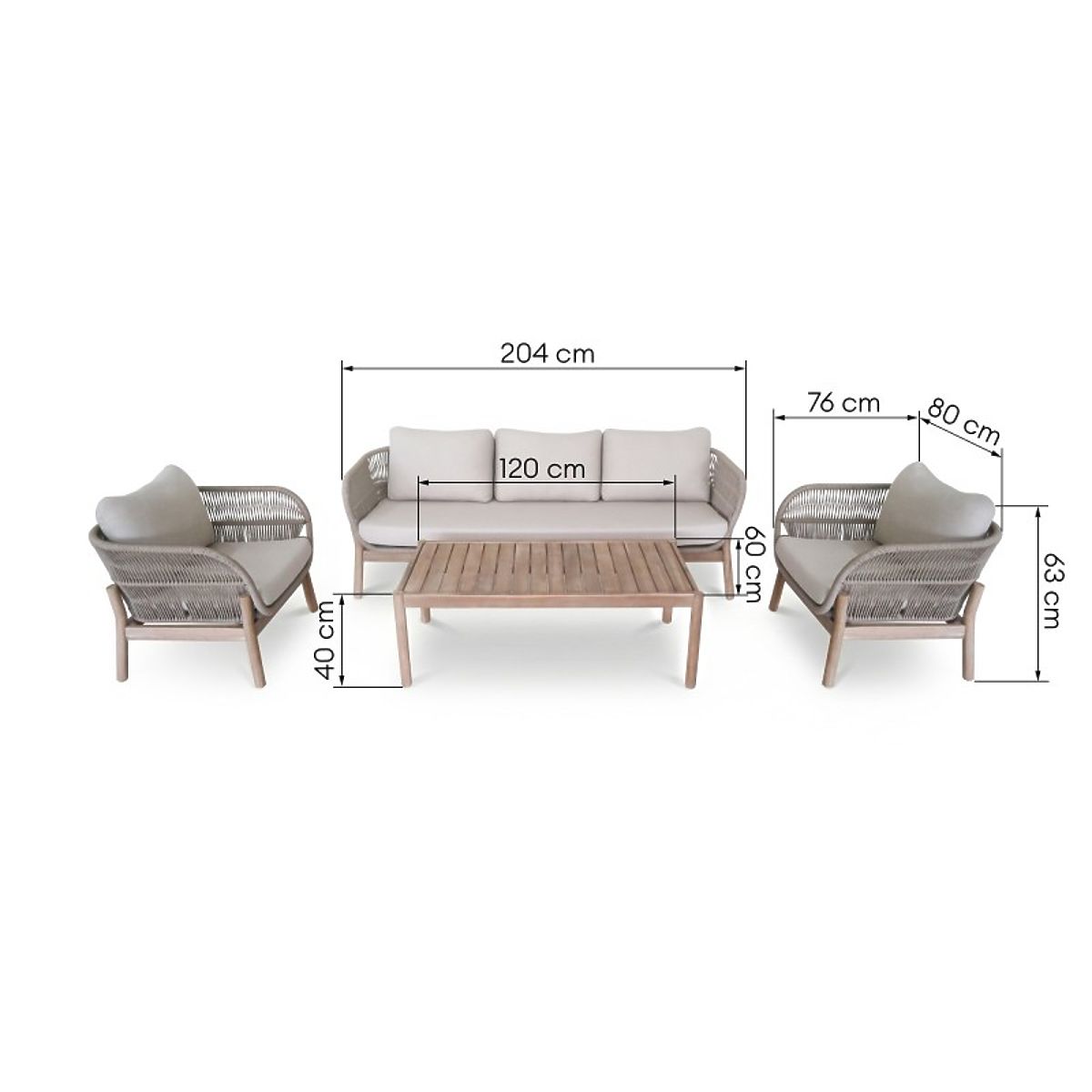 Unesite udobnost dnevnog boravka u vrt s setom Fiorentino. Trosjed, dvije fotelje i pravokutni stolić čine skladnu cjelinu, idealnu za mirna poslijepodneva na svježem zraku. Pleteni elementi od izdržljivog užeta i zaobljene linije predstavljaju zanimljiv akcent, dok akacijevo drvo, koje je osnova seta, ne samo da dodaje prirodni šarm, već također osigurava čvrstoću i trajnost za mnoge sezone.