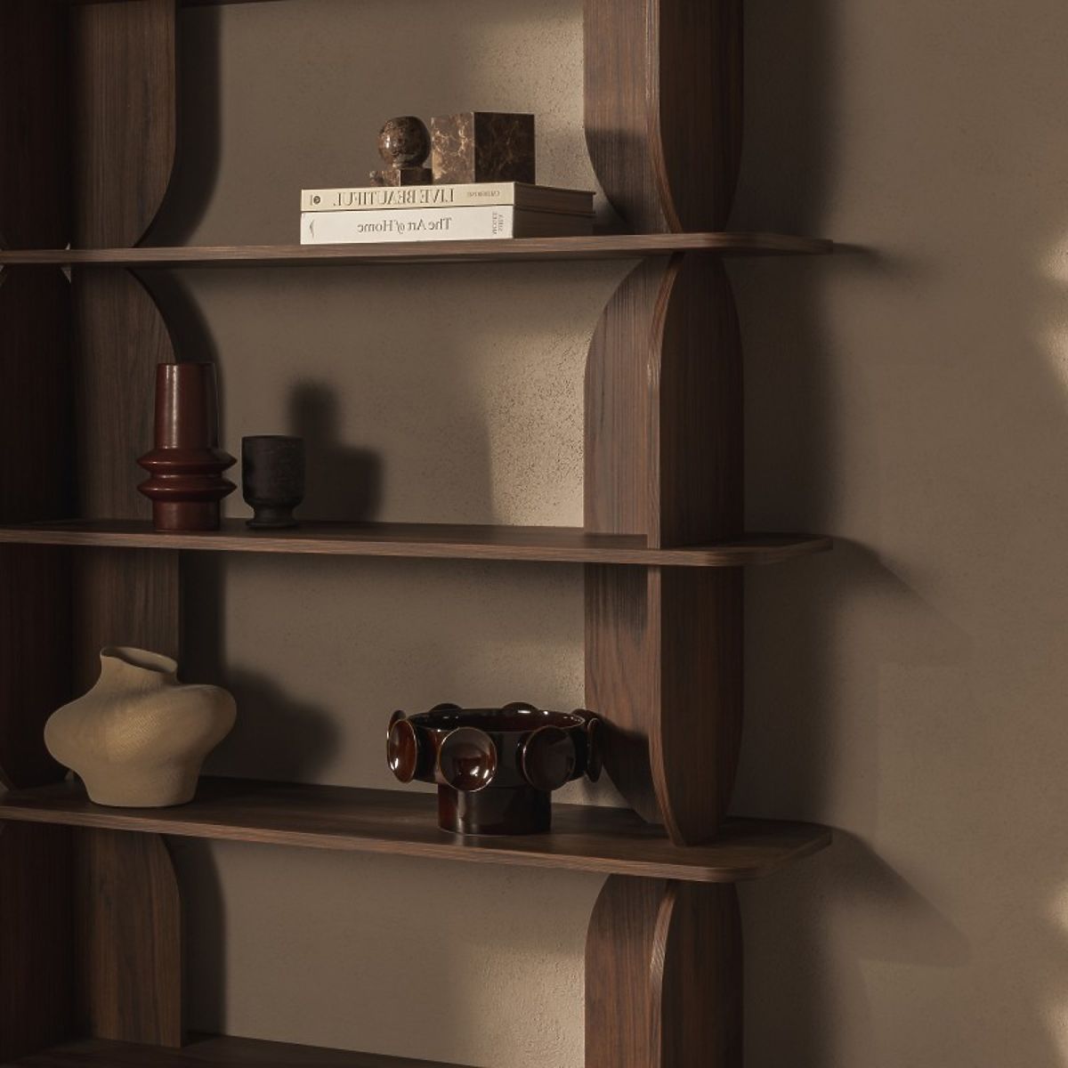 Zaobljena visoka polica Loocky u boji oraha. .. više