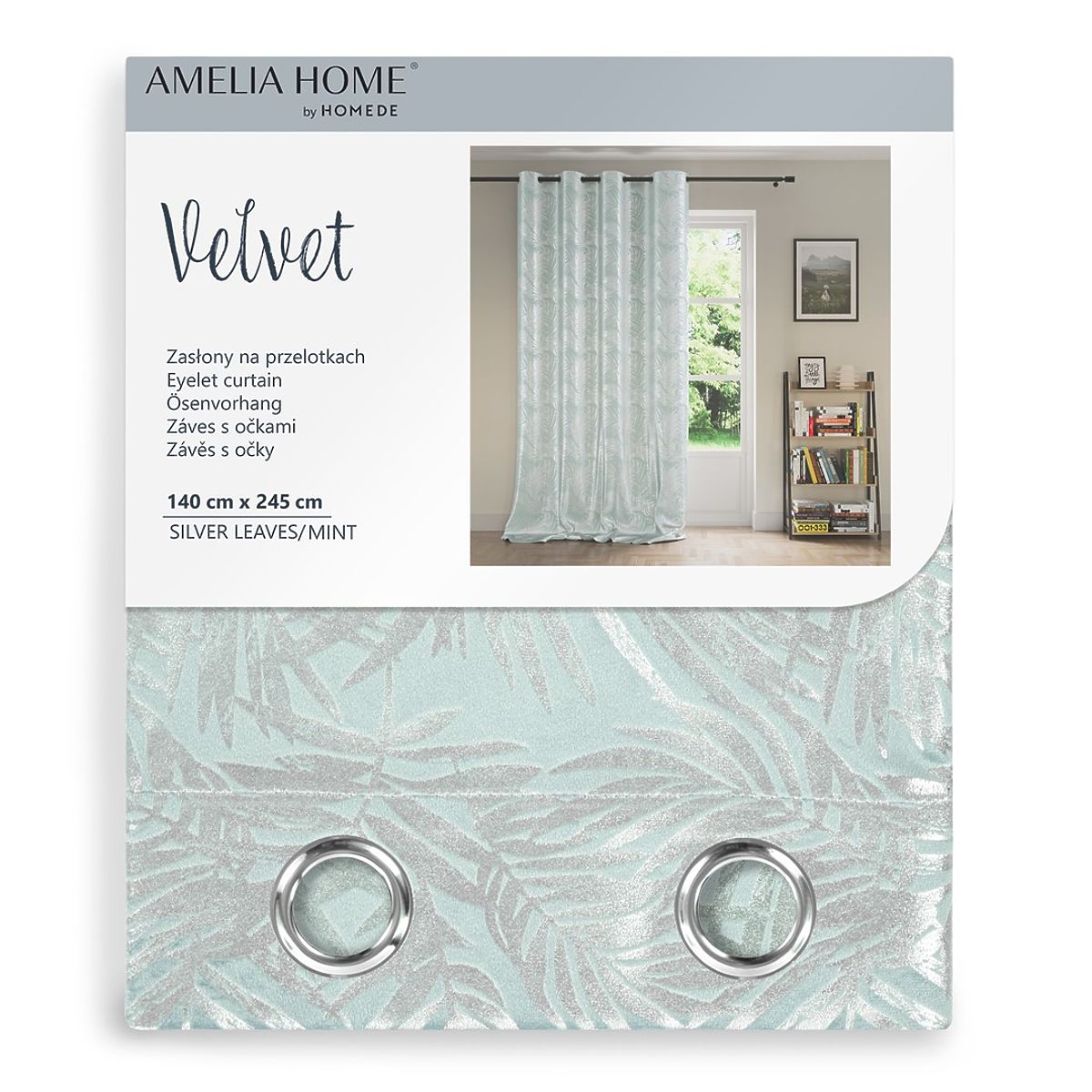 Lukahome.hr » Zavjese i zavjese / Zavjese / Zavjesa SILVERLEAVES mint boja tiskani stil glamour srebrne provodnice baršun 140x245 AmeliaHom