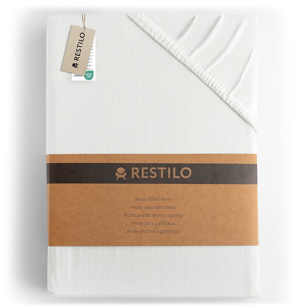 Bijela jersey plahta klasičnog stila s gumom. .. više