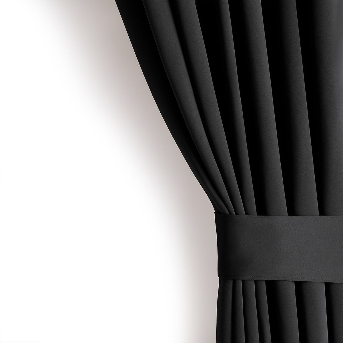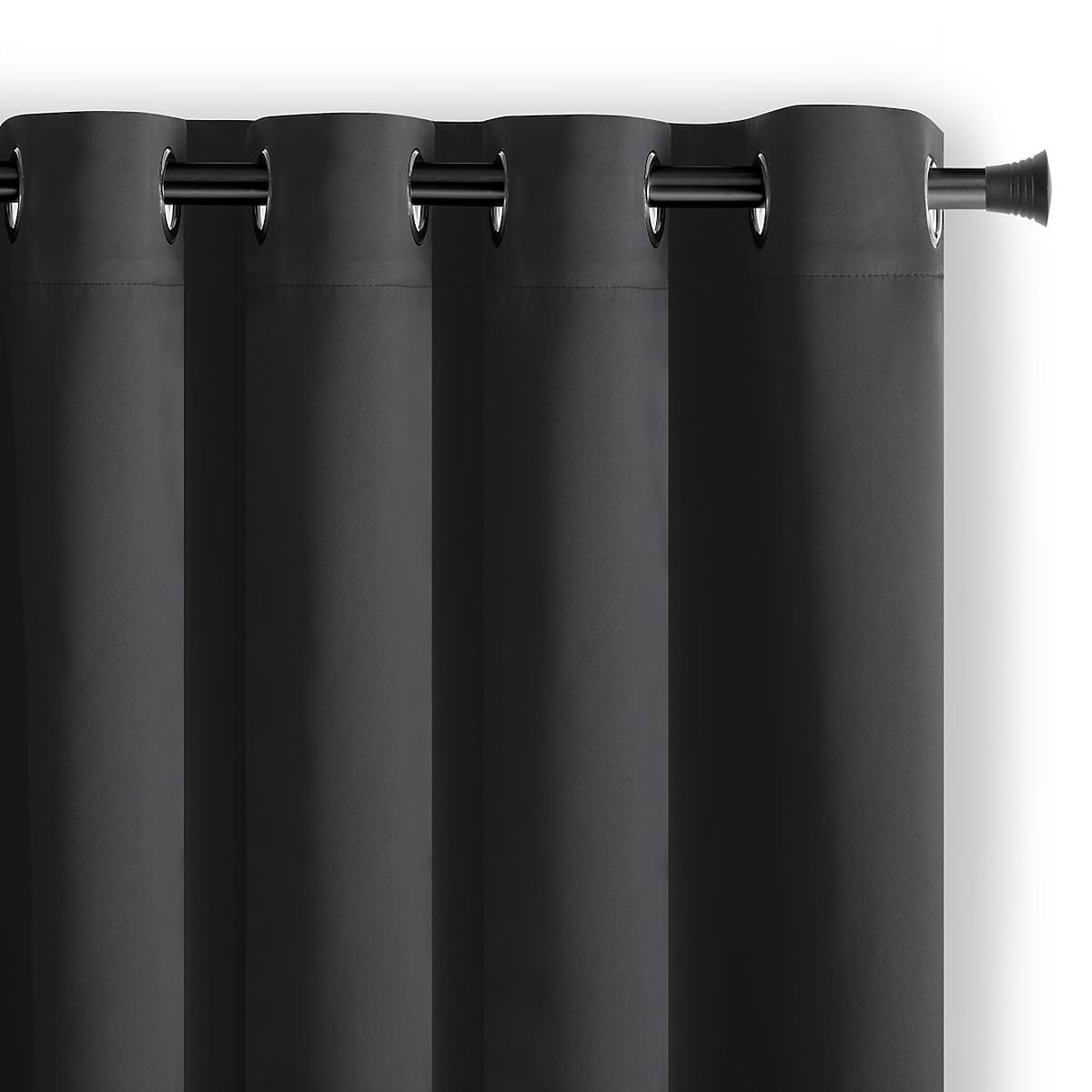 Crna BLACKOUT zavjesa s klasičnim stilom i srebrnim ušicama. .. više