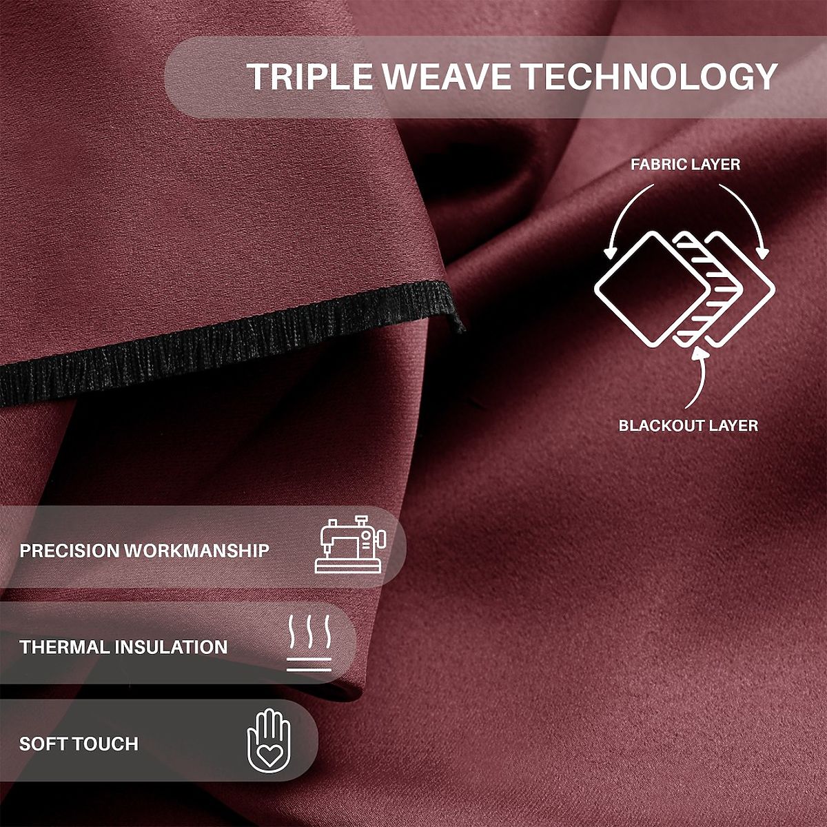 Crvena BLACKOUT zavjesa s klasičnim stilom i srebrnim prstenovima. .. više