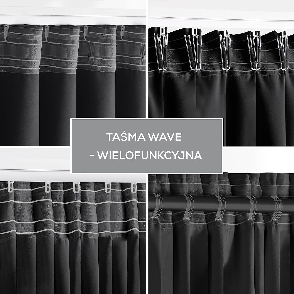 Crna zavjesa s 90% zamračenjem i tkaninskom trakom. .. više