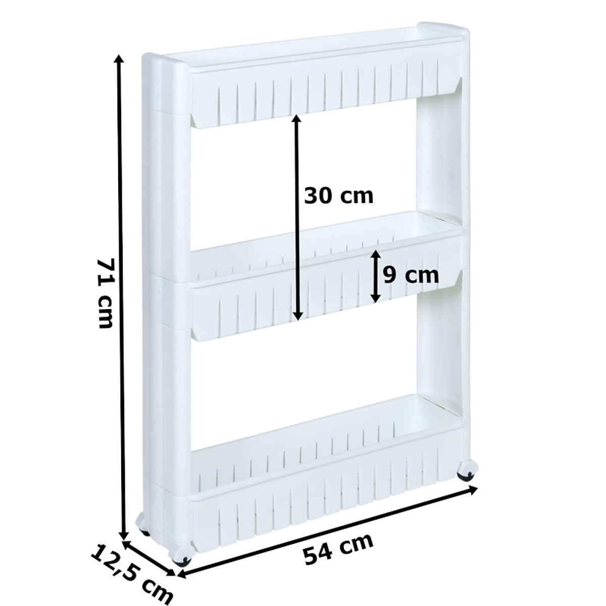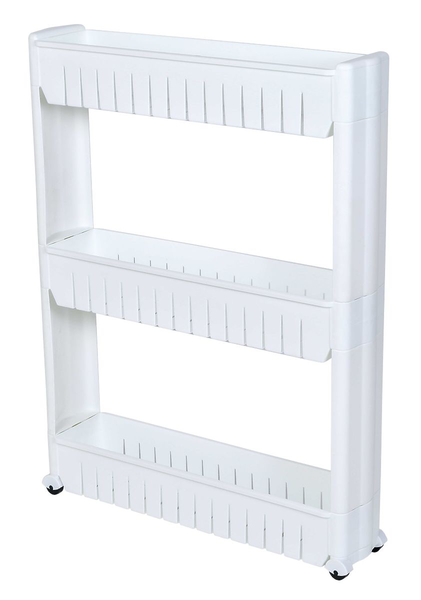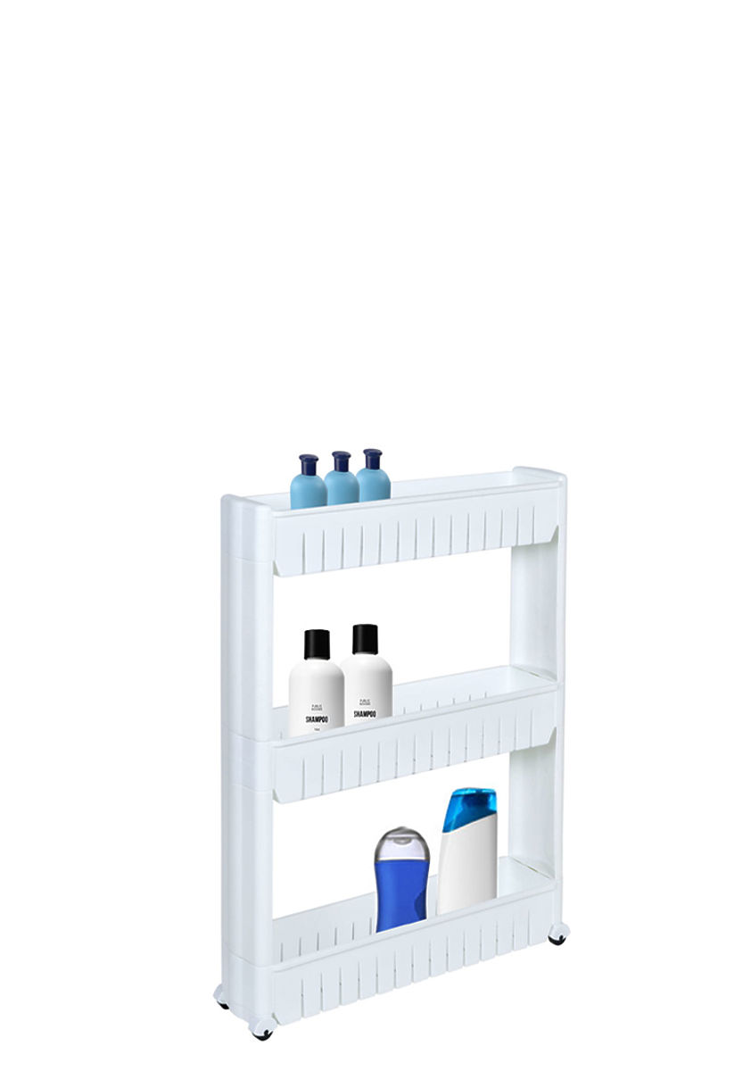 Mobilni ormarić idealan za uske prostore, kao što su kuhinja ili kupaonica. Njegova modularna konstrukcija od izdržljive plastike omogućuje jednostavno prilagođavanje potrebama – police se mogu dodavati ili uklanjati. Zahvaljujući kompaktnoj veličini, savršeno se uklapa između ormarića i hladnjaka, perilice ili na druga teško dostupna mjesta. Kuhinjska polica idealna je za pohranu začina, kuhinjskih dodataka, kozmetike, sredstava za čišćenje i mnogih drugih potrepština. Mobilnost osiguravaju četiri kotačića, zahvaljujući kojima se kupaonski ormarić na kotačićima lako premješta tamo gdje je potreban.
