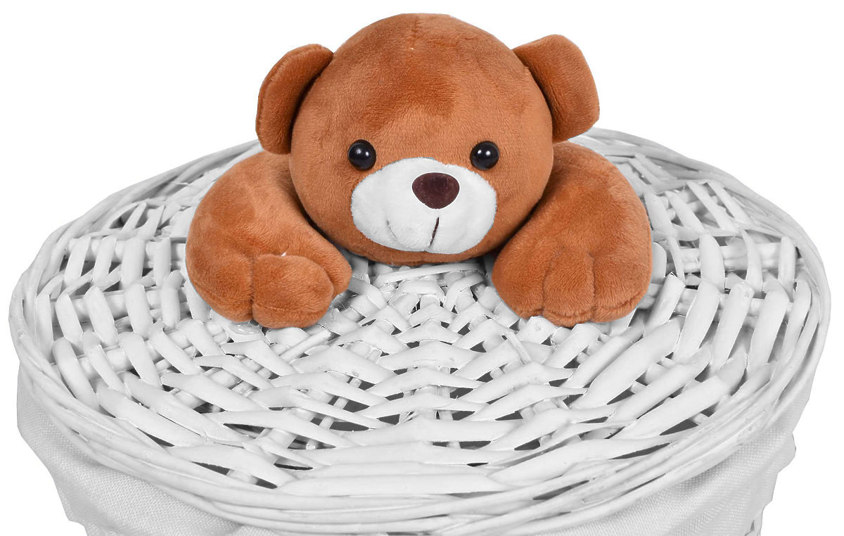 Proizvod je izrađen od pruća s ravnomjernim pletenjem, unutrašnjost je obložena izdržljivim, krem lanenim materijalom. Poklopac ima na vrhu ugodnog na dodir, plišanog medvjedića.